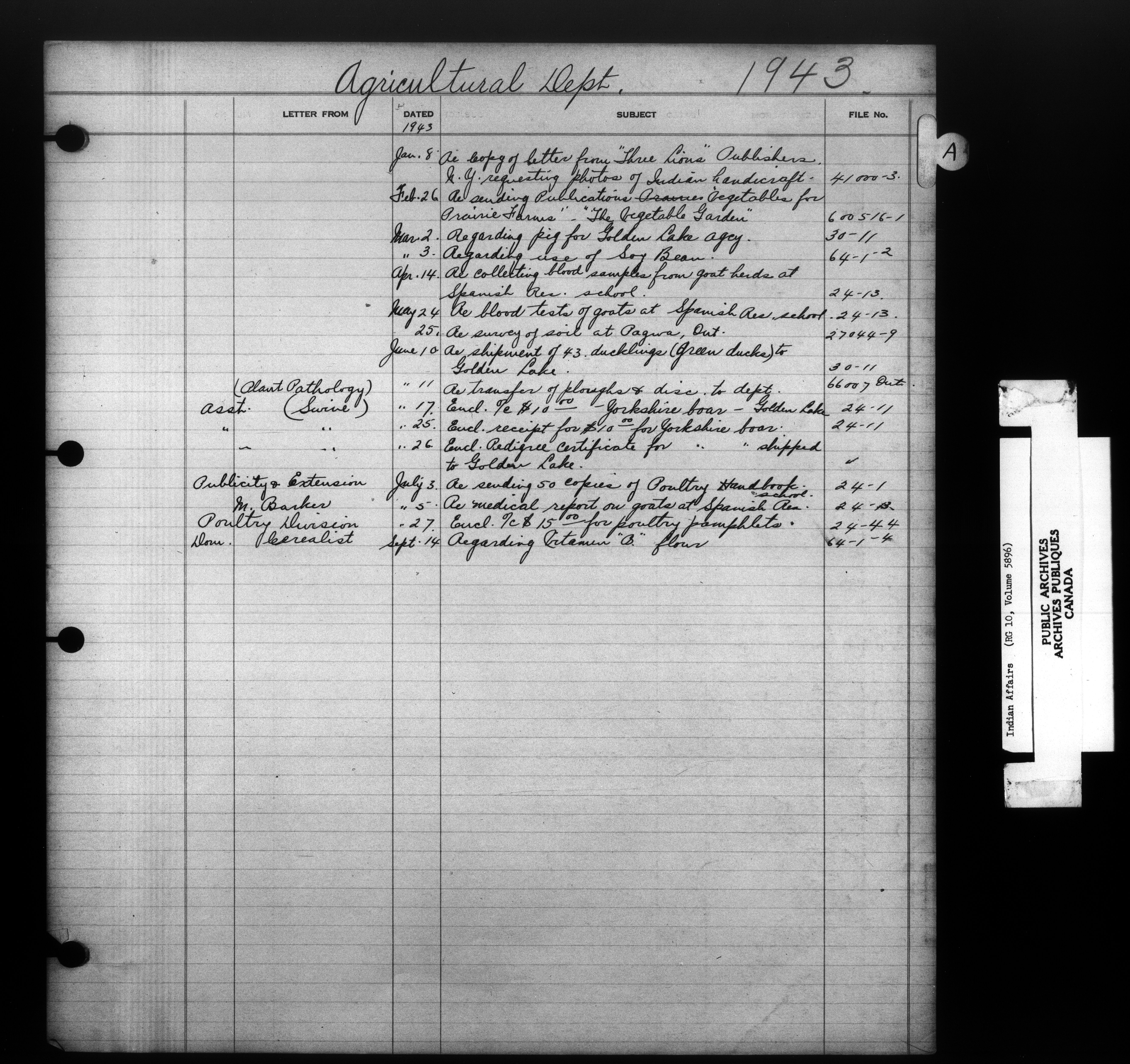 Department of Indian Affairs, Headquarters central registry system :registers, indices and indexed registers : C-10927
