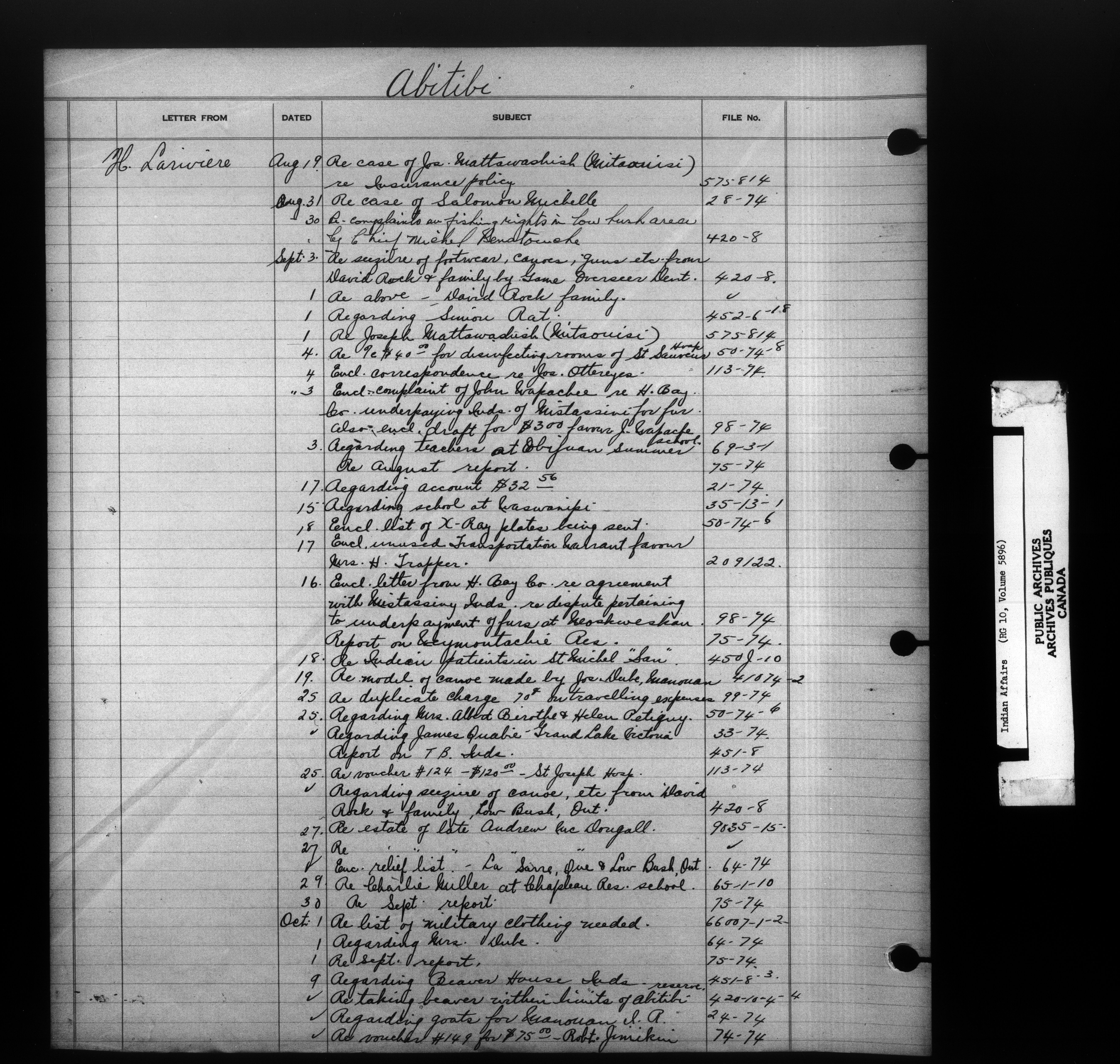 Department of Indian Affairs : Indexed Registers for Eastern Canada - 10927