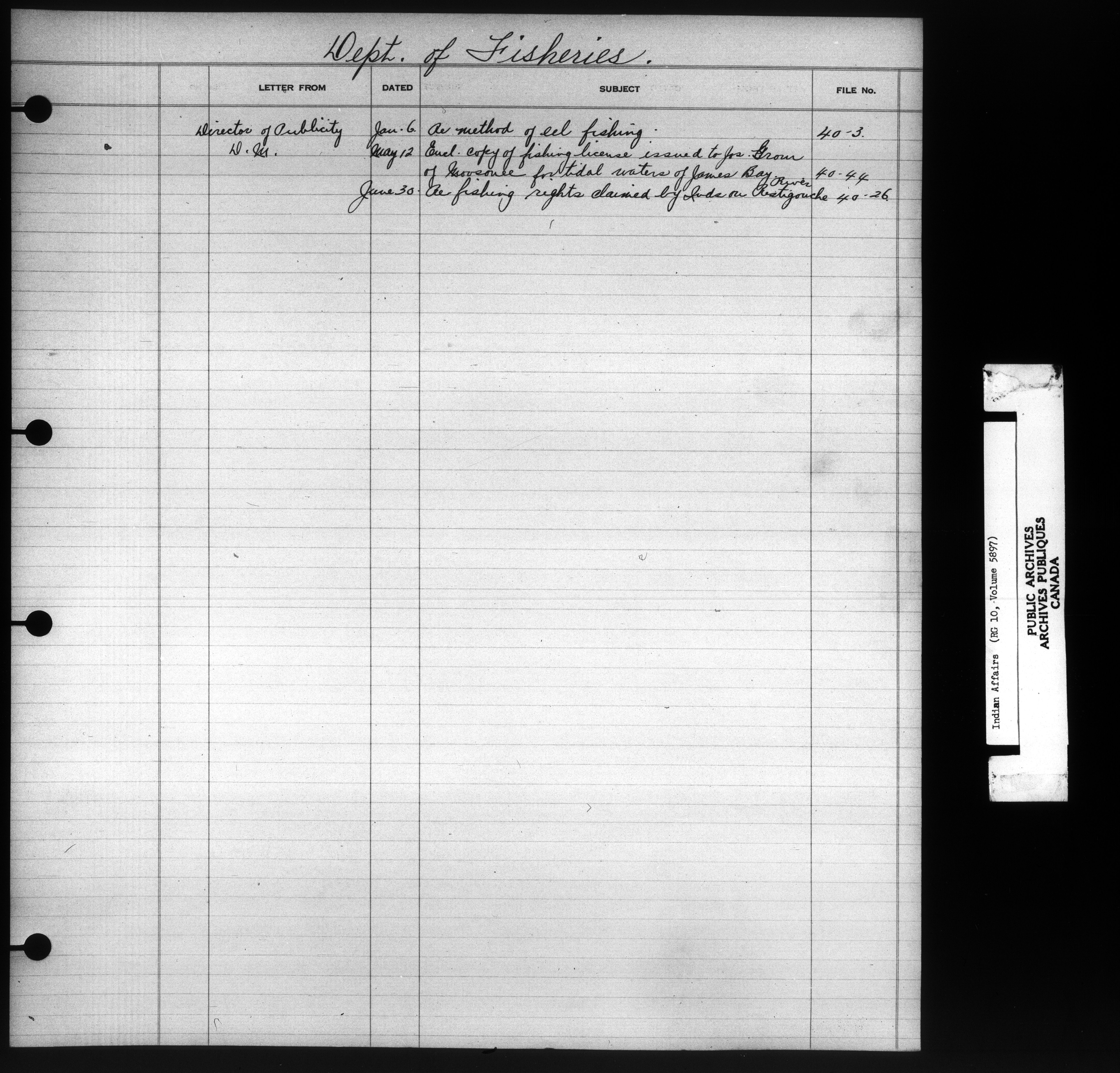 Department of Indian Affairs : Indexed Registers for Eastern Canada - 10928