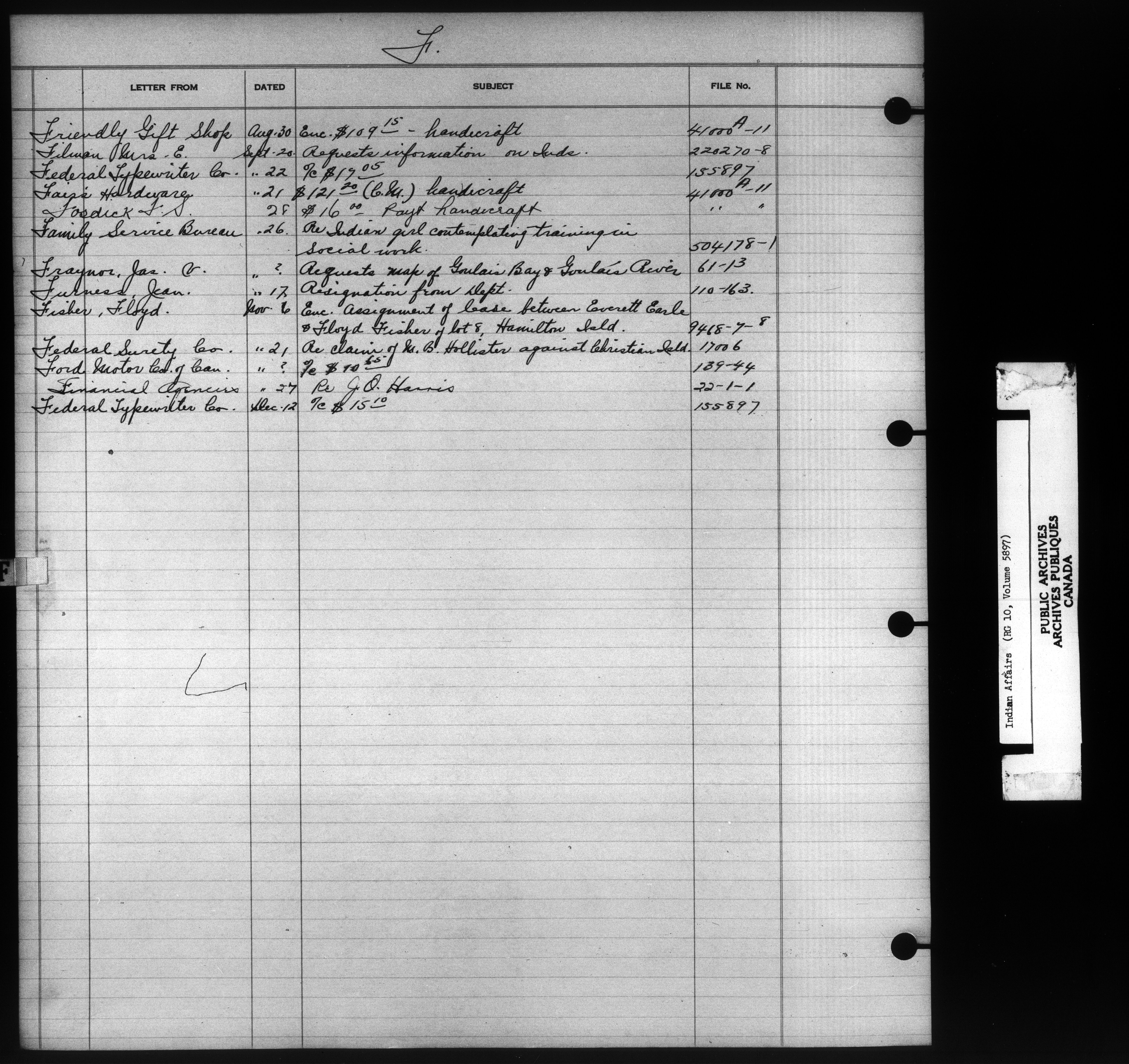 Department of Indian Affairs : Indexed Registers for Eastern Canada - 10928