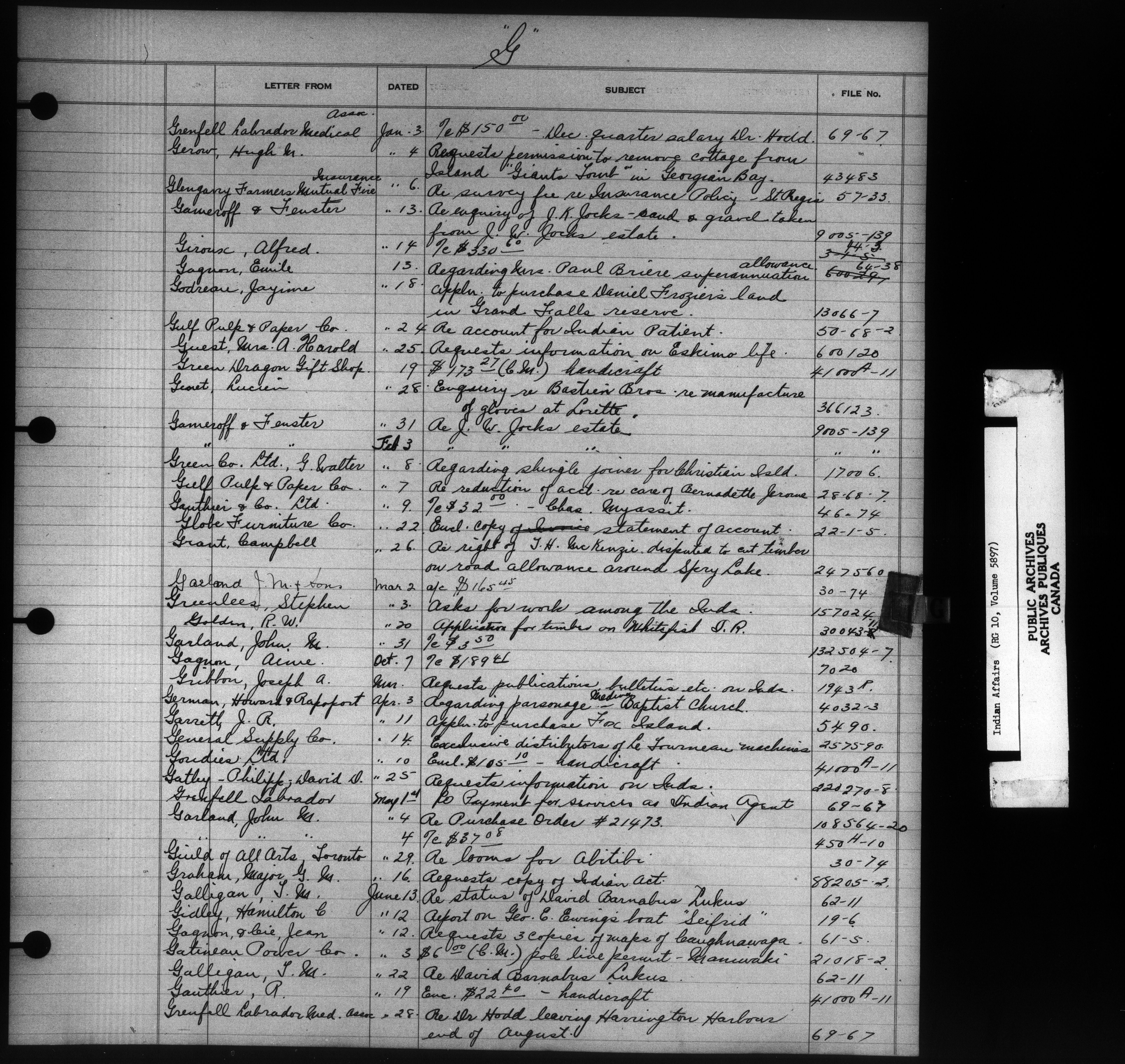 Department of Indian Affairs : Indexed Registers for Eastern Canada - 10928