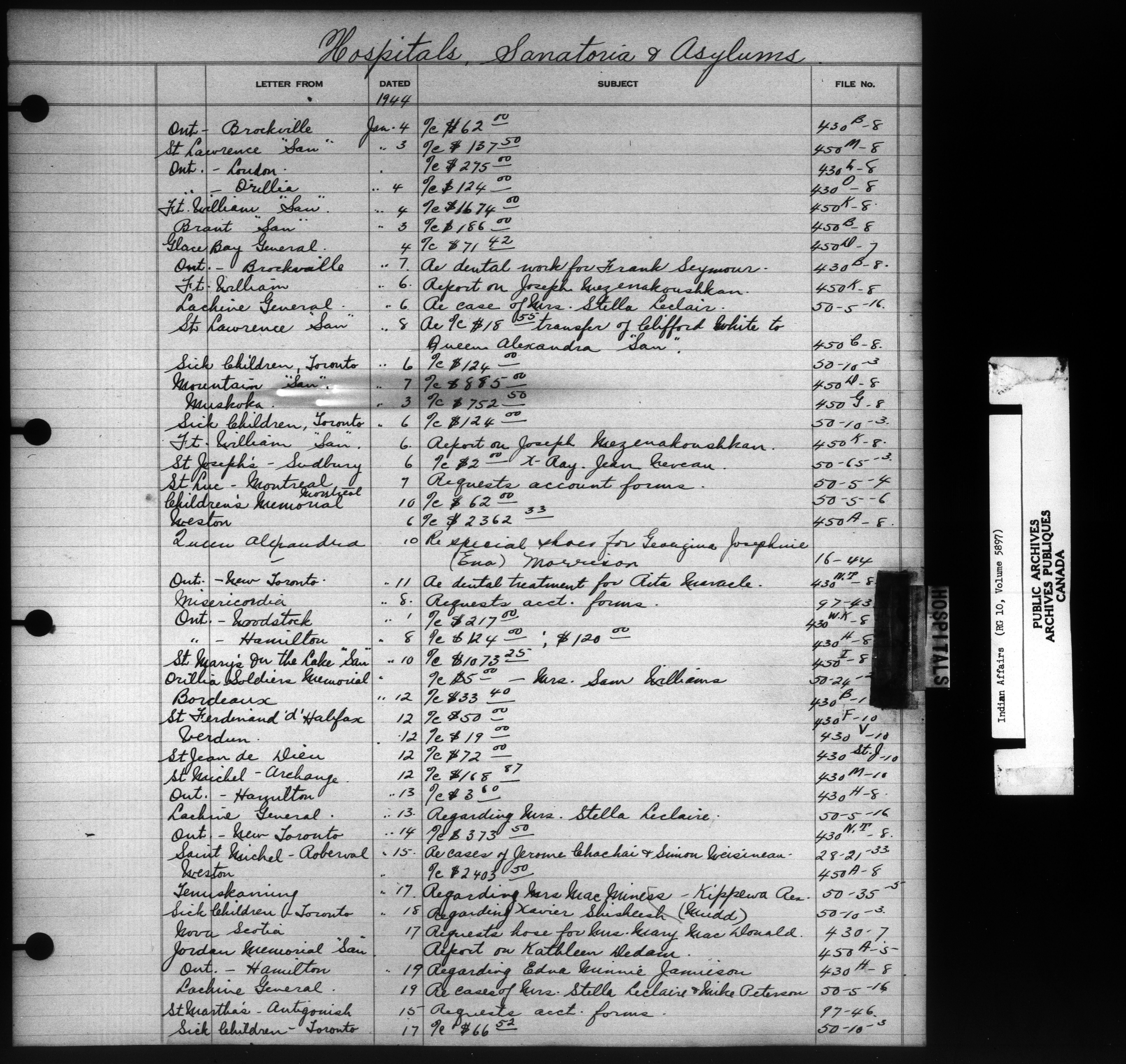 Department of Indian Affairs : Indexed Registers for Eastern Canada - 10928