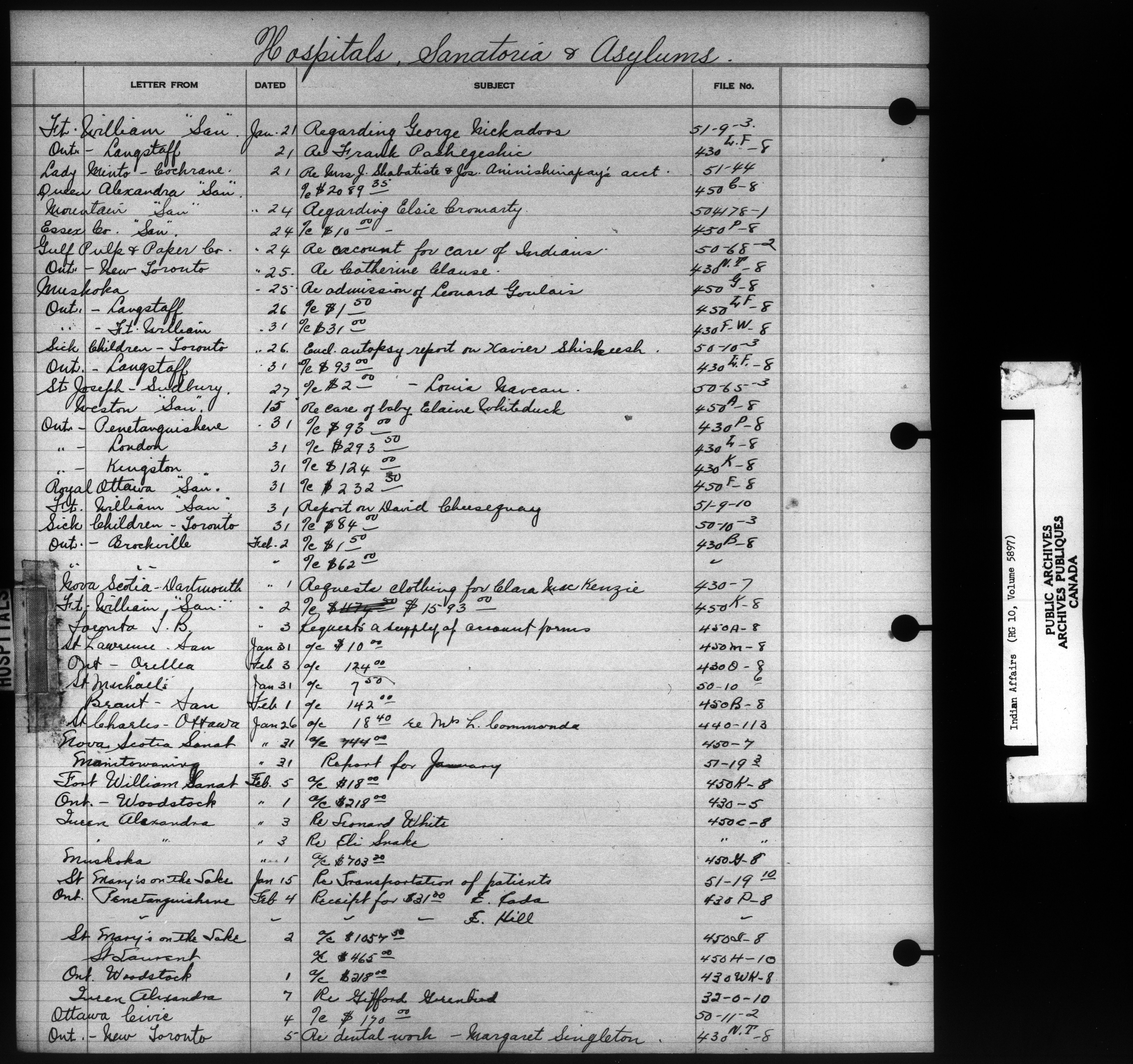 Department of Indian Affairs : Indexed Registers for Eastern Canada - 10928