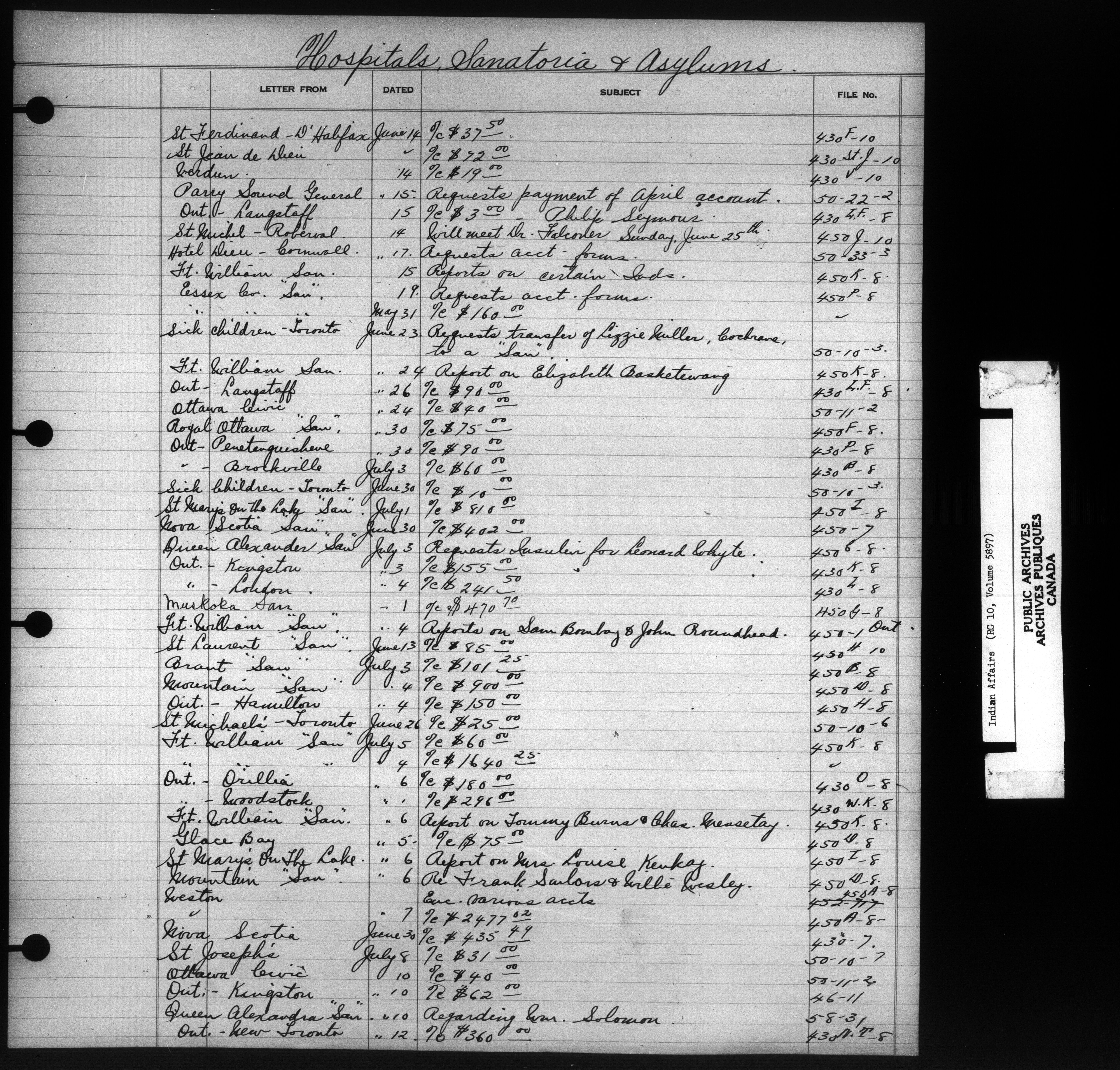 Department of Indian Affairs, Headquarters central registry system :registers, indices and indexed registers : C-10928