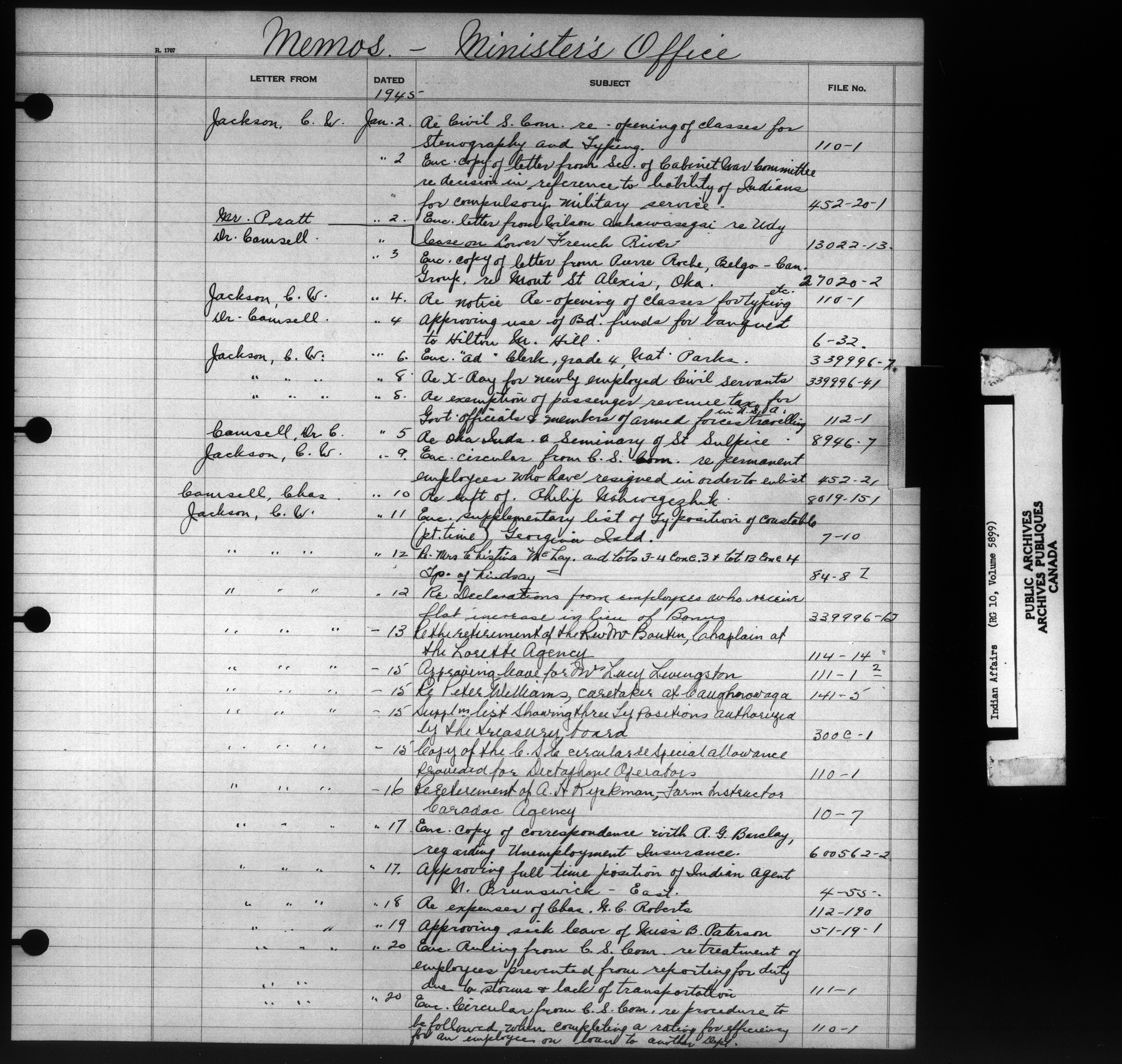 Department of Indian Affairs : Indexed Registers for Eastern Canada - 10928