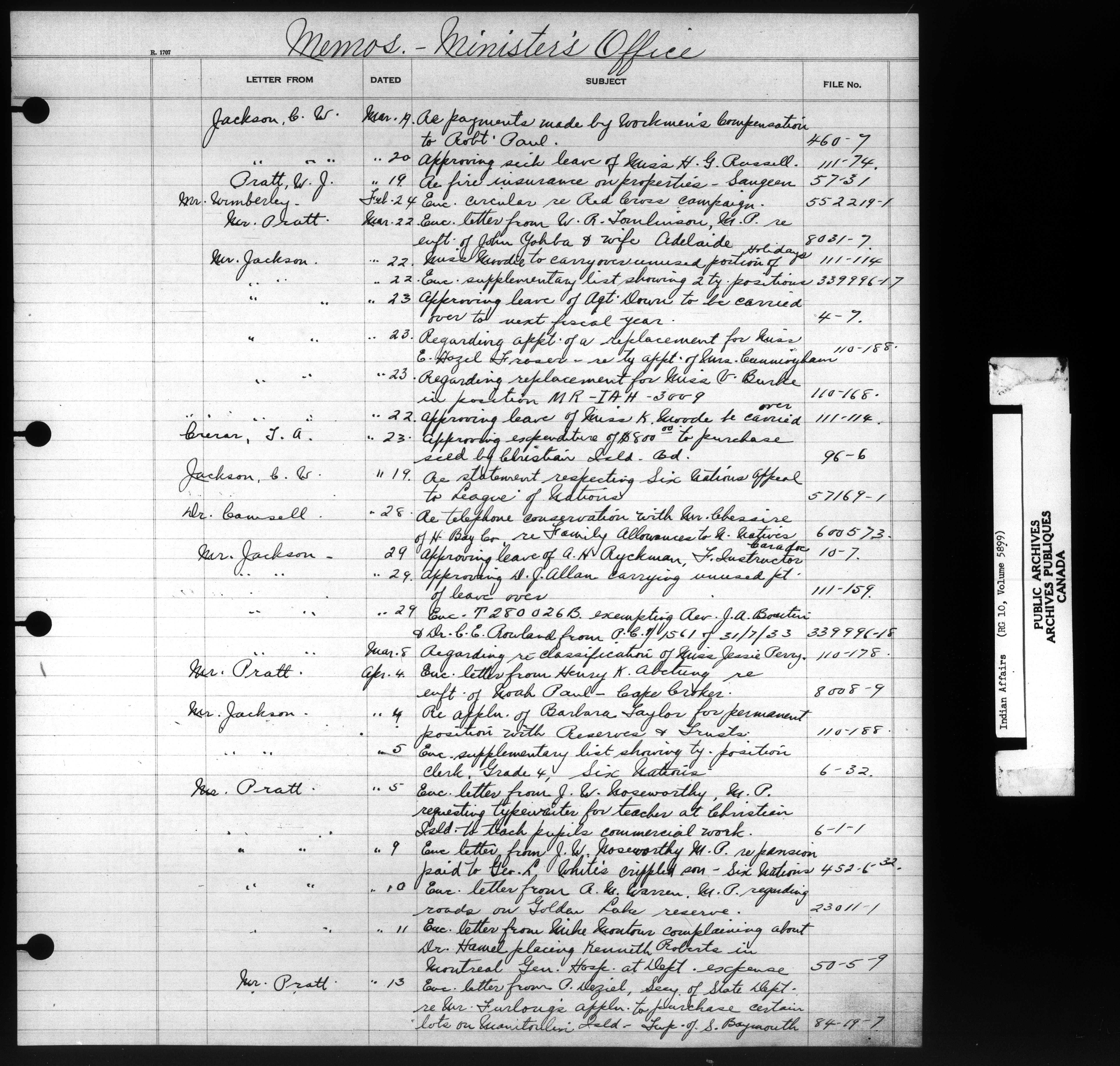 Department of Indian Affairs : Indexed Registers for Eastern Canada - 10928