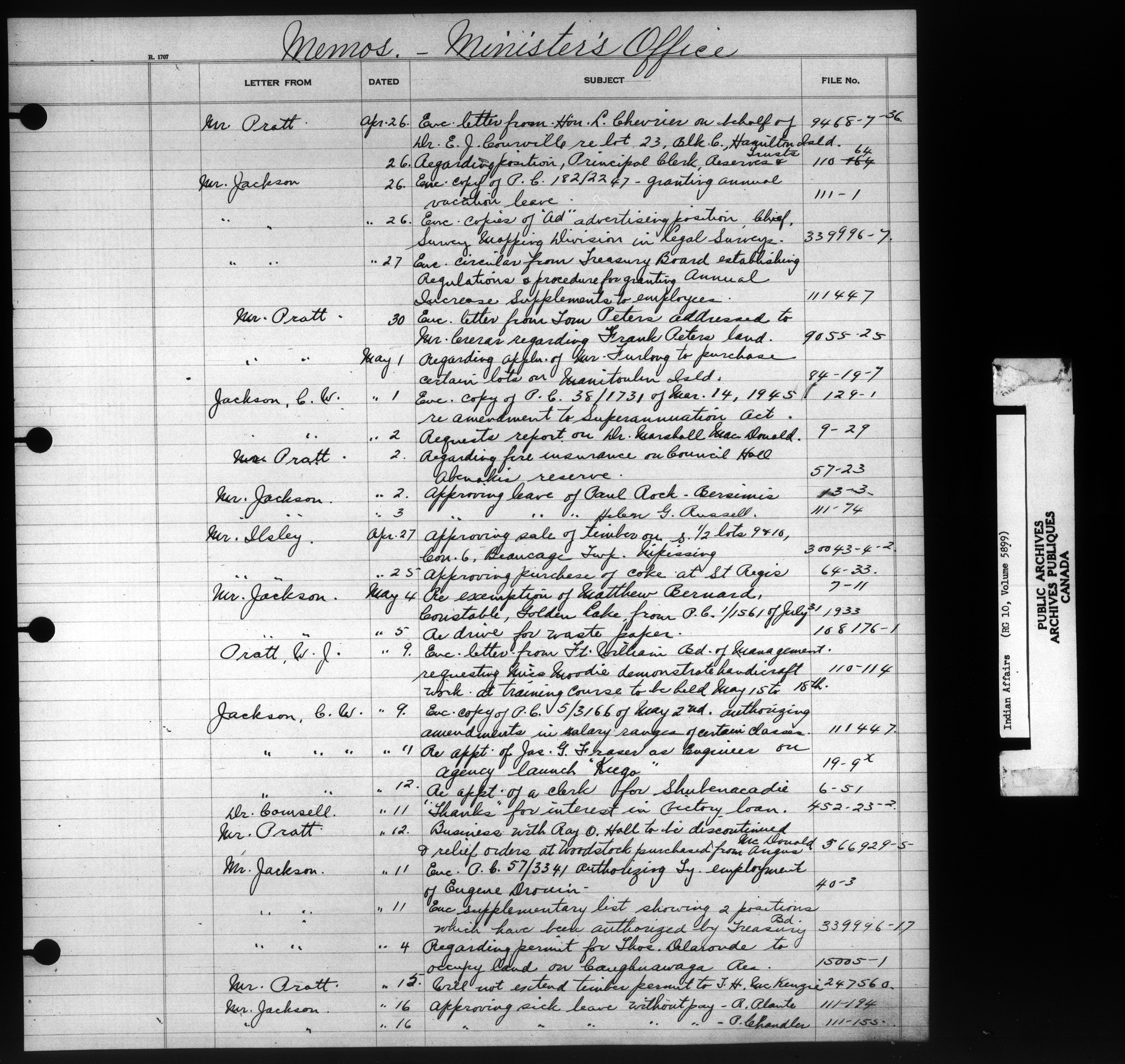 Department of Indian Affairs, Headquarters central registry system :registers, indices and indexed registers : C-10928