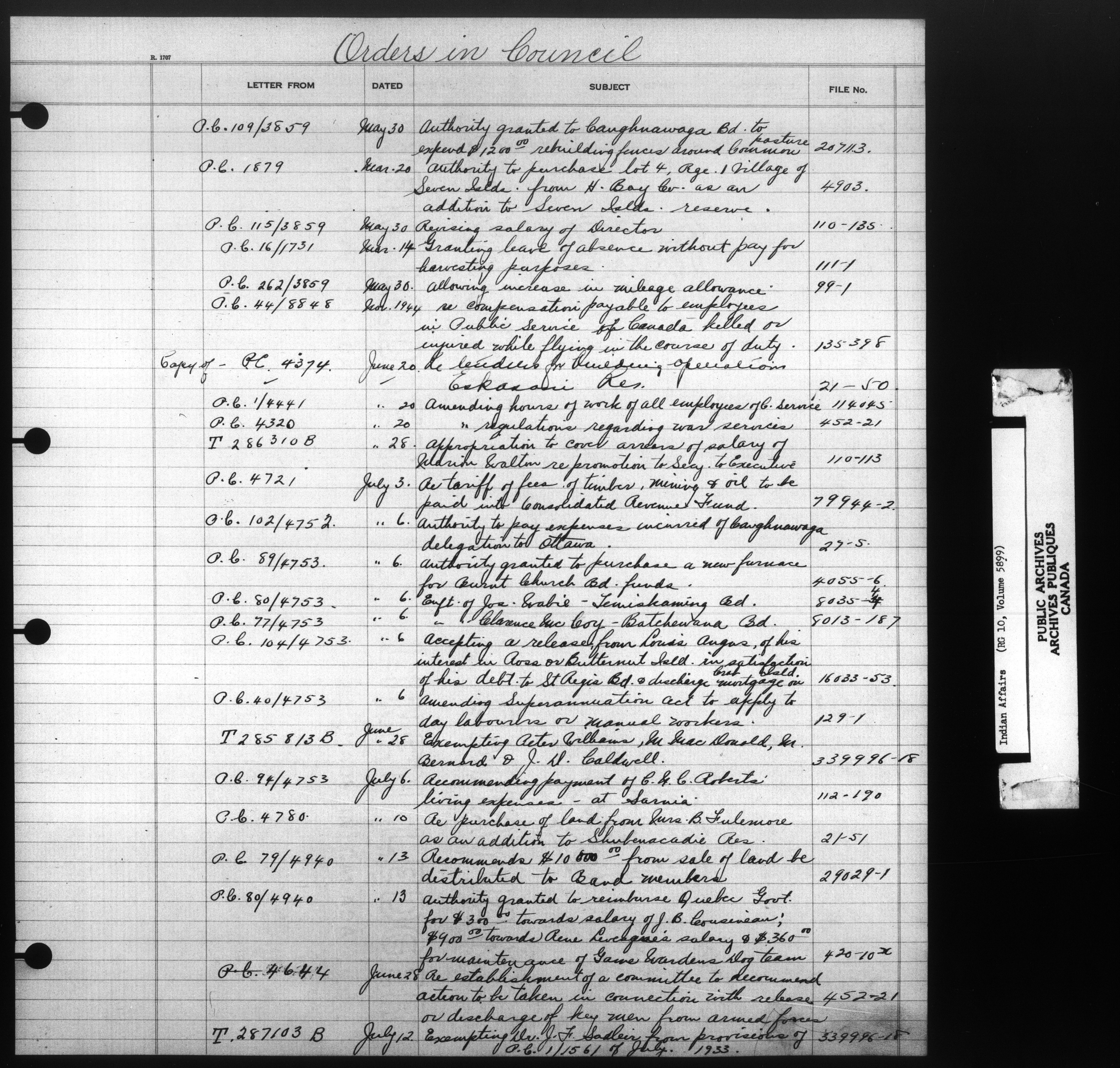 Department of Indian Affairs : Indexed Registers for Eastern Canada - 10929