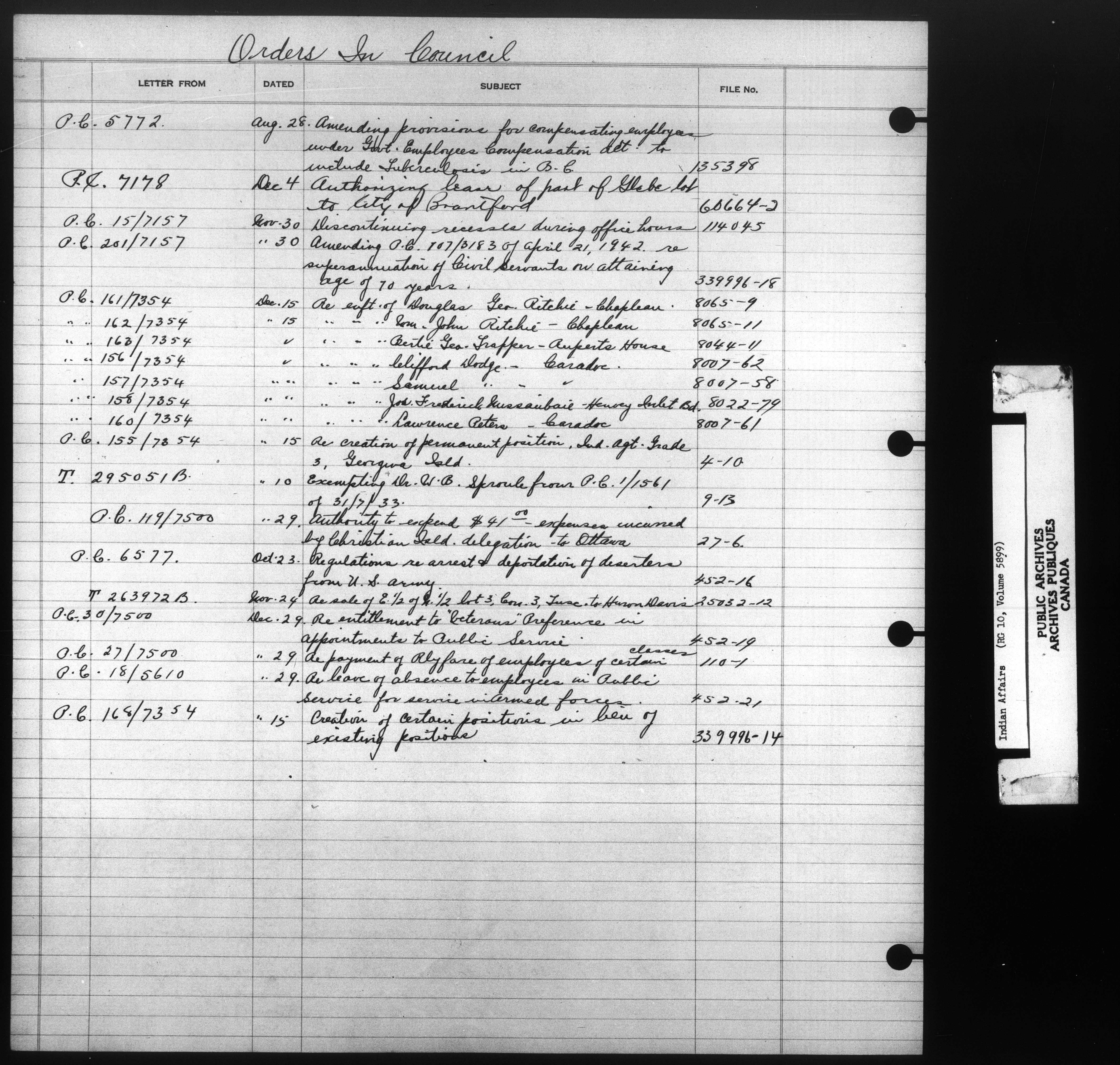 Department of Indian Affairs, Headquarters central registry system :registers, indices and indexed registers : C-10929