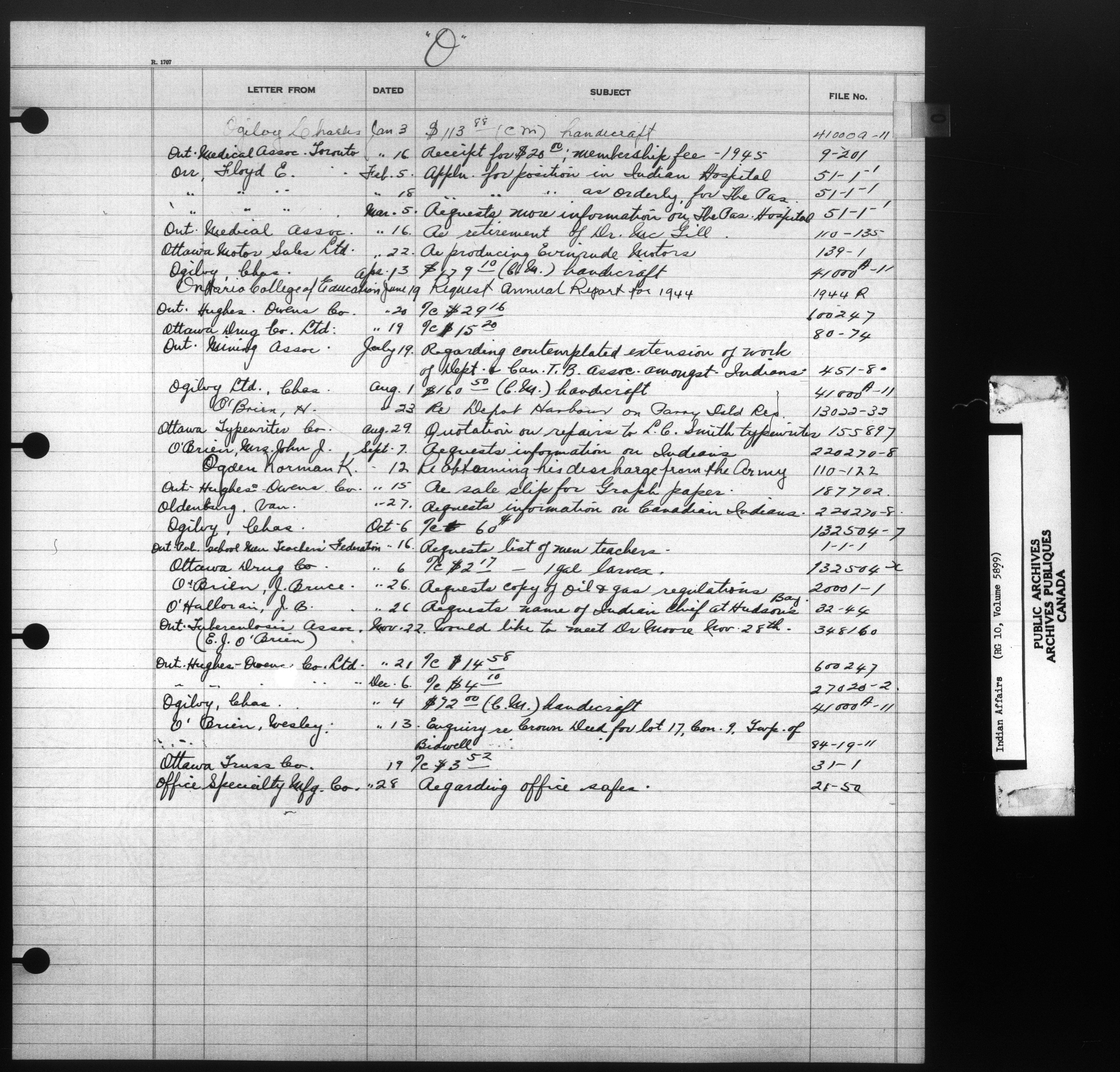 Department of Indian Affairs : Indexed Registers for Eastern Canada - 10929