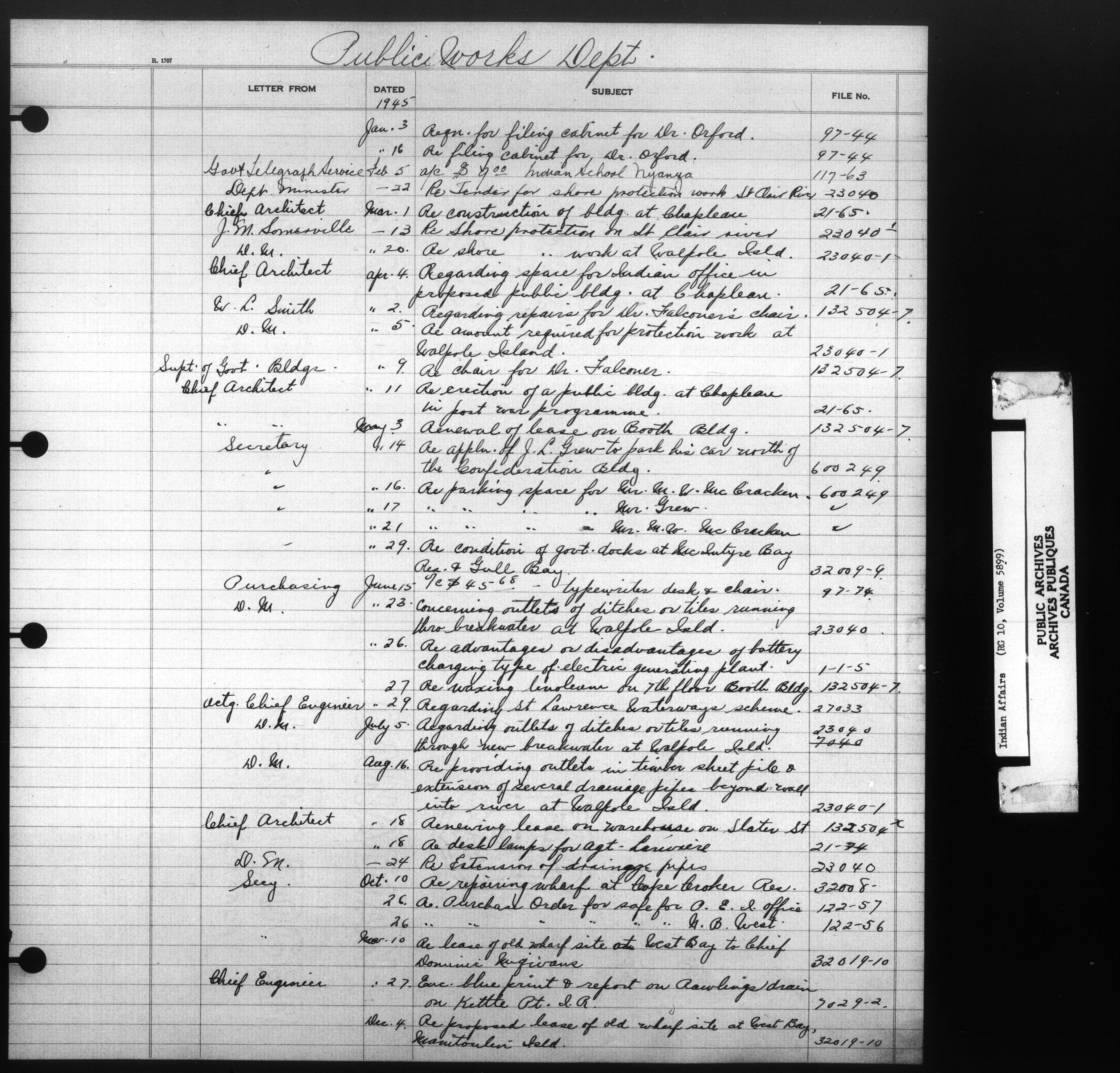 Department of Indian Affairs : Indexed Registers for Eastern Canada - 10929