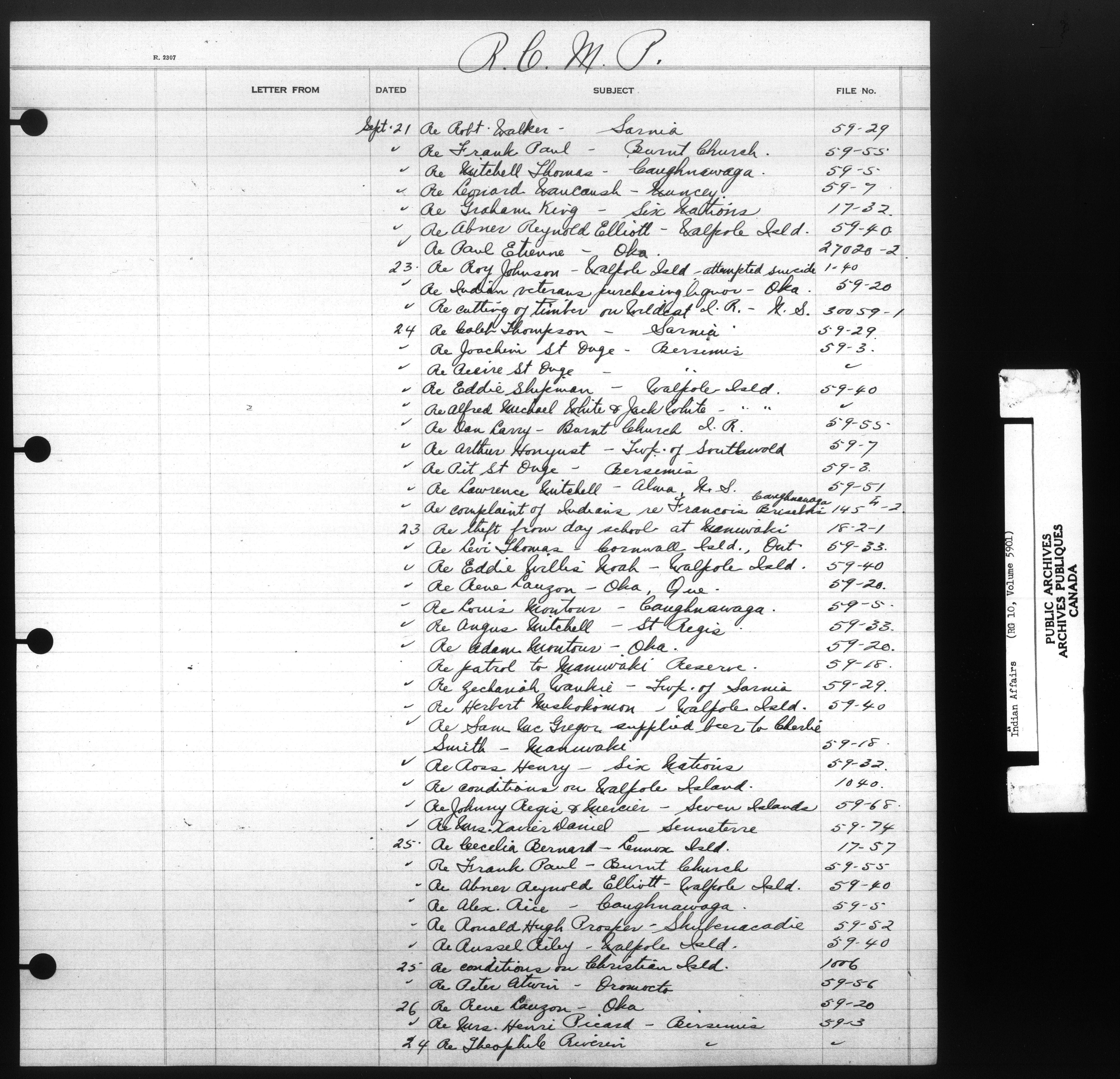 Department of Indian Affairs : Indexed Registers for Eastern Canada - 10929