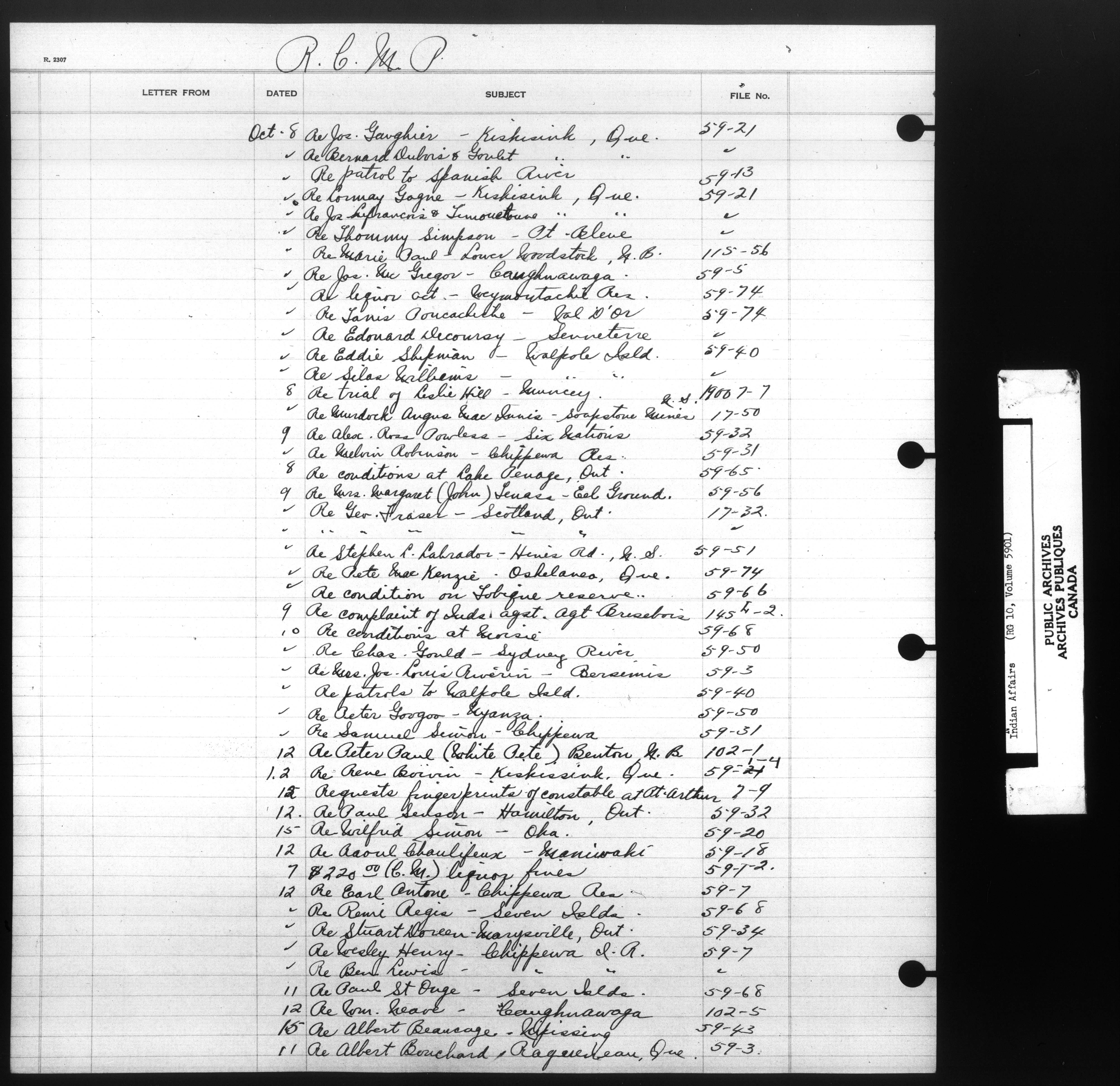 Department of Indian Affairs : Indexed Registers for Eastern Canada - 10929