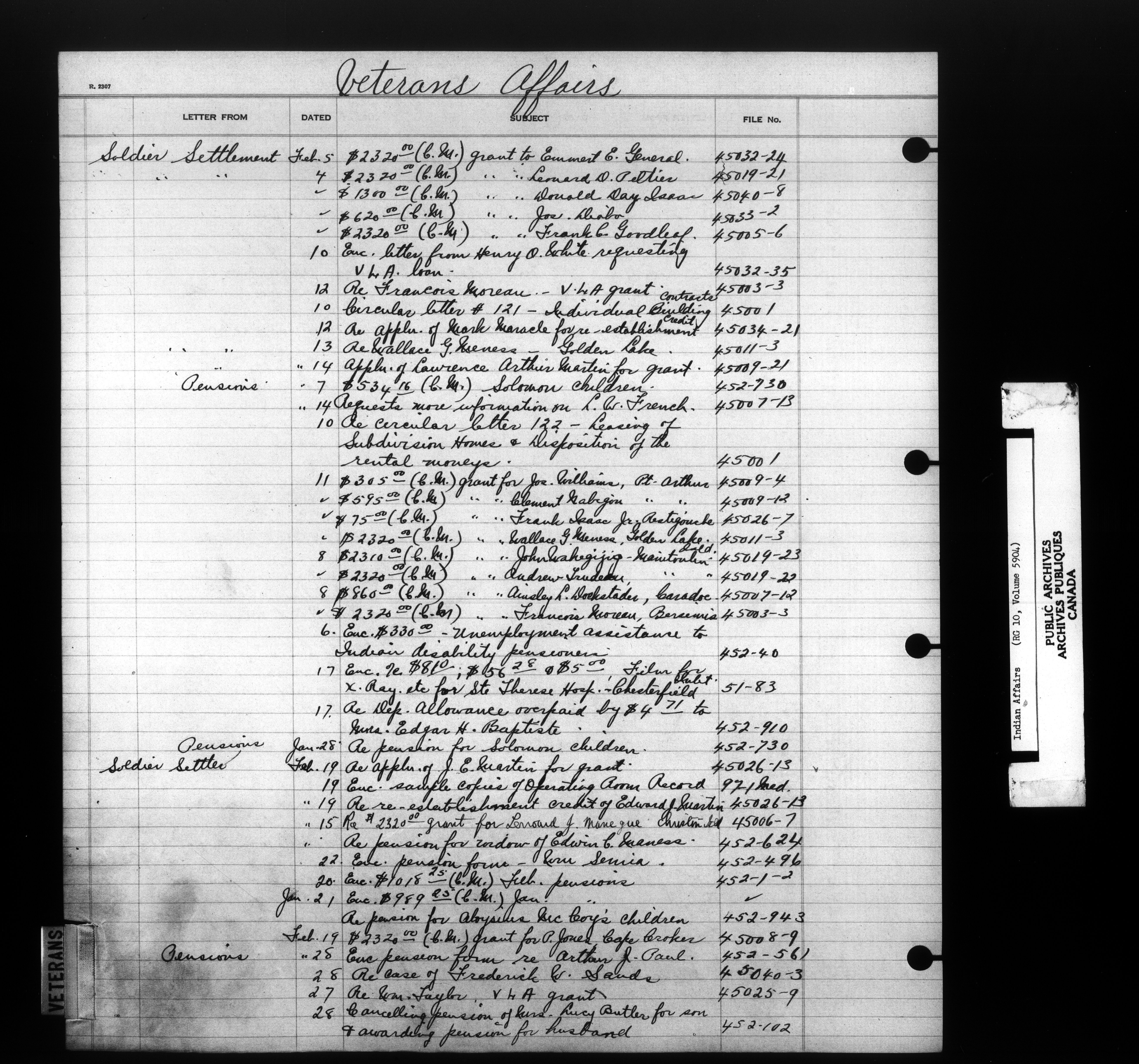 Department of Indian Affairs : Indexed Registers for Eastern Canada - 10930