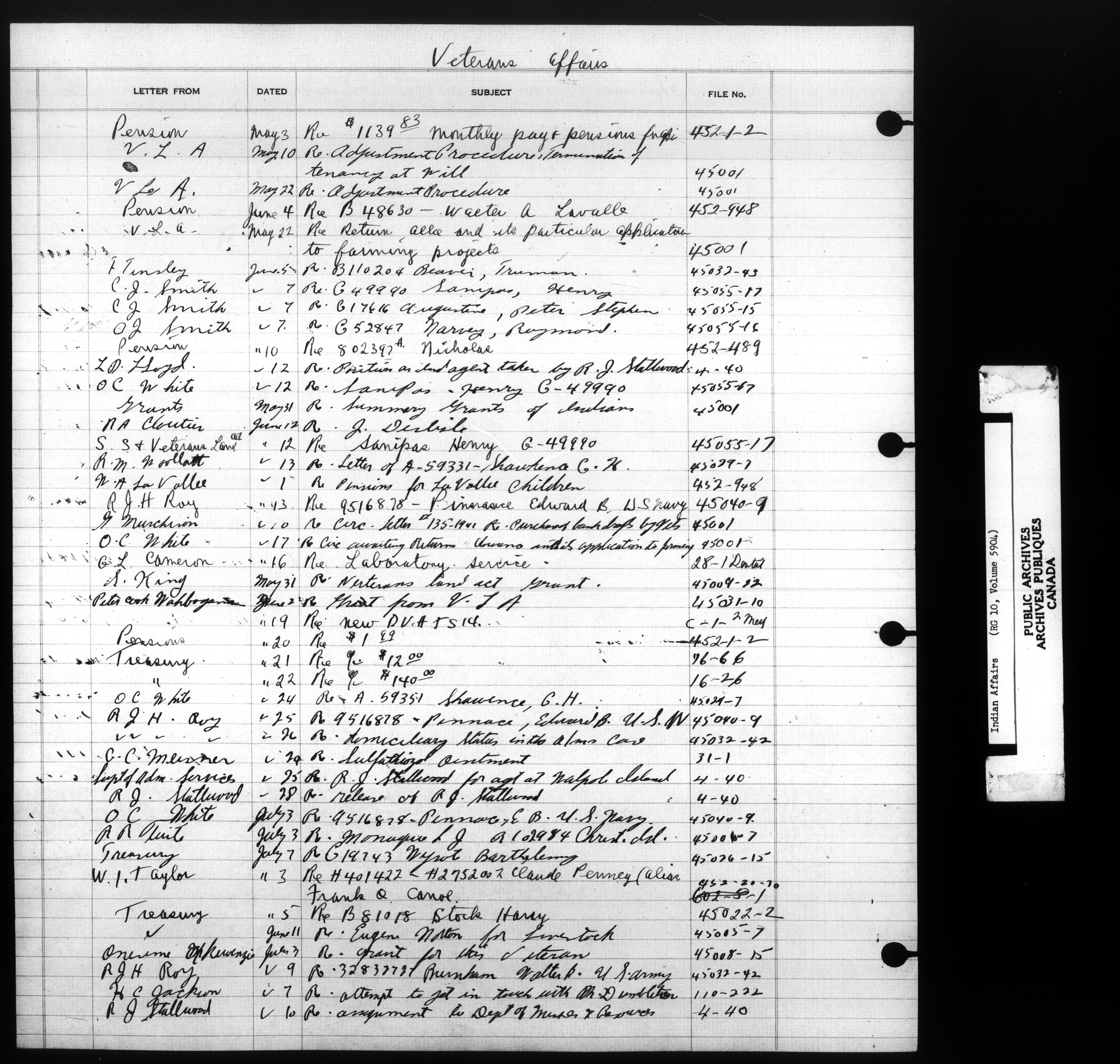 Department of Indian Affairs : Indexed Registers for Eastern Canada - 10930
