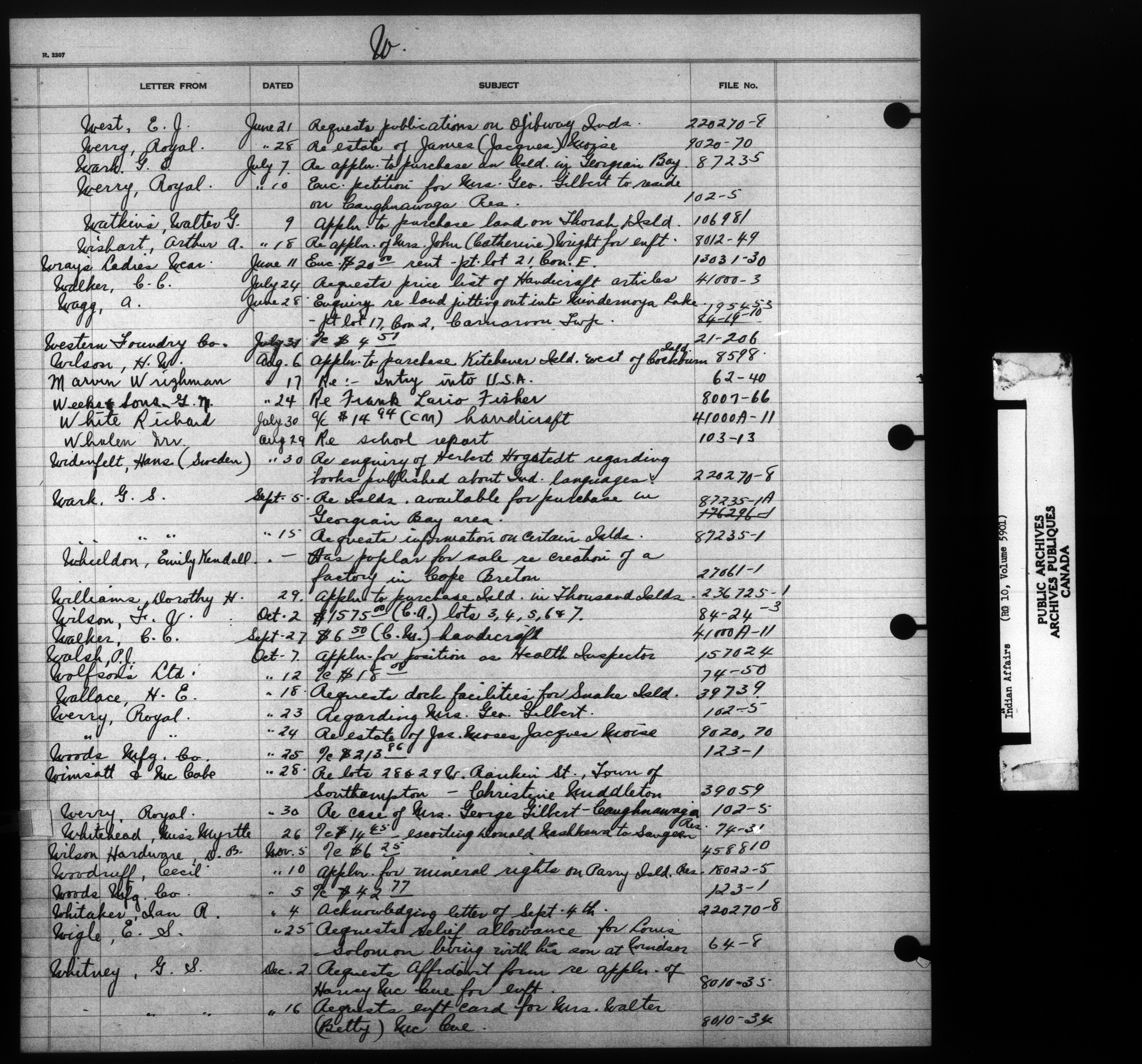 Department of Indian Affairs : Indexed Registers for Eastern Canada - 10930