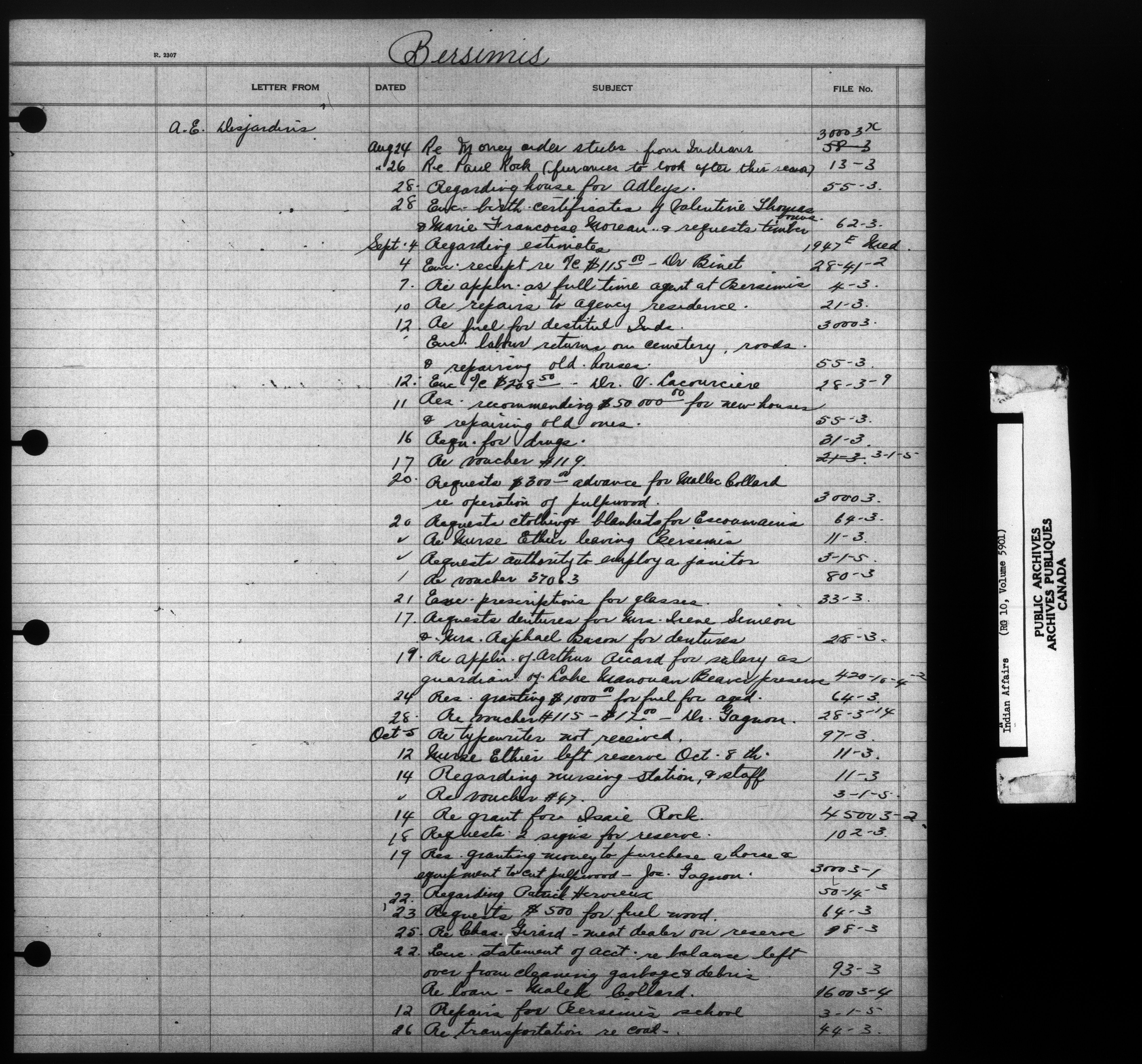 Department of Indian Affairs, Headquarters central registry system :registers, indices and indexed registers : C-10930