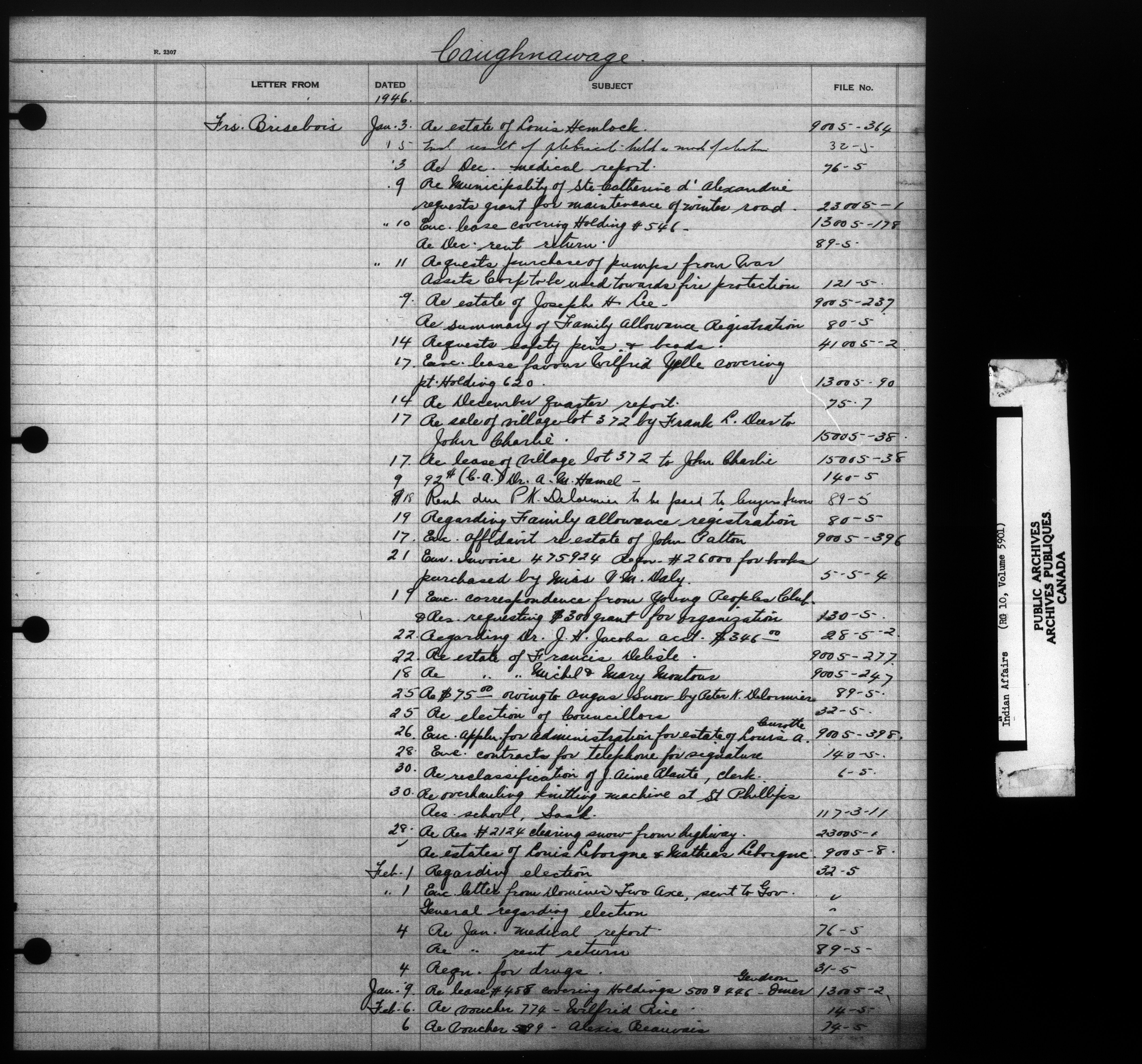 Department of Indian Affairs : Indexed Registers for Eastern Canada - 10930