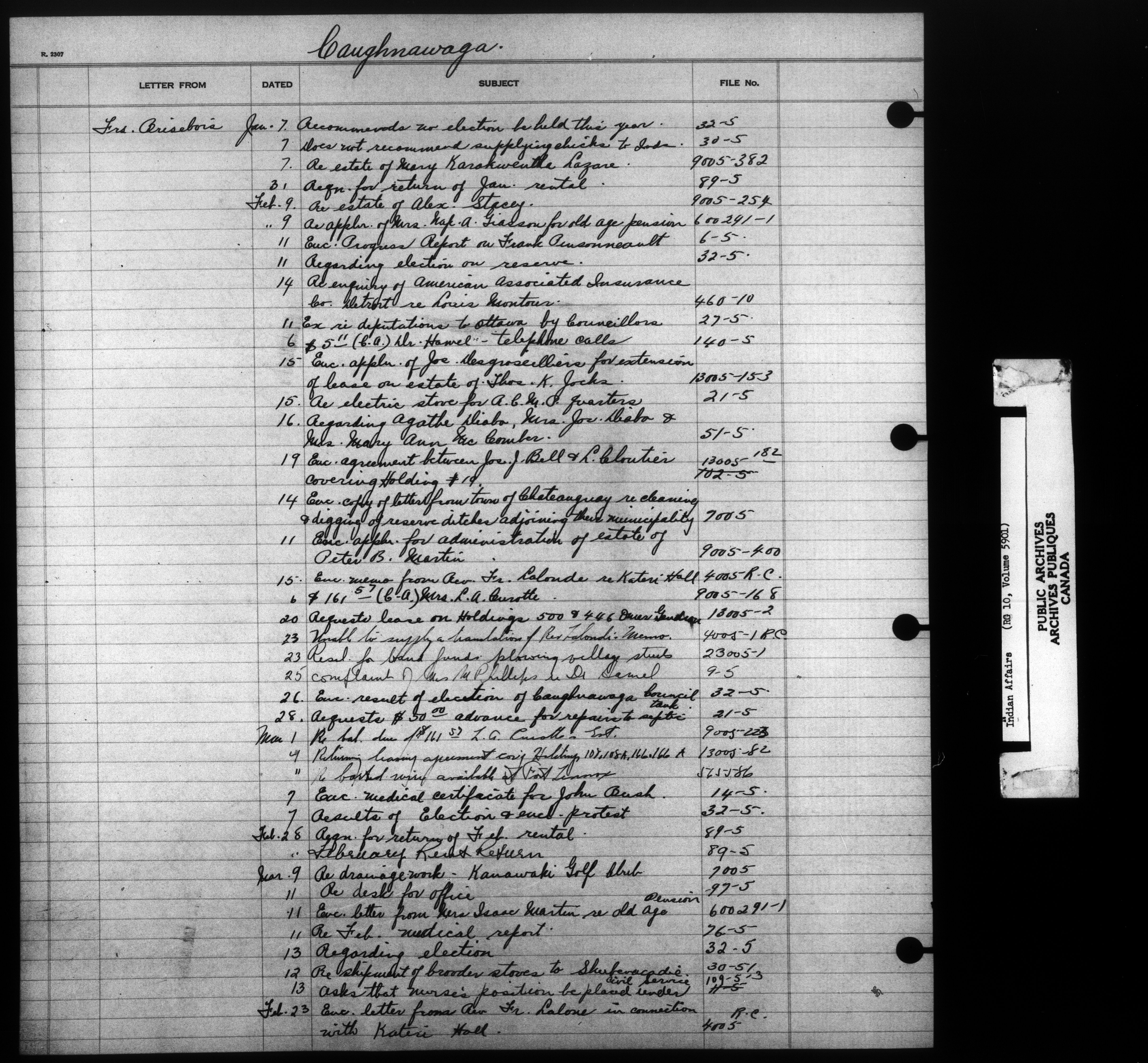 Department of Indian Affairs : Indexed Registers for Eastern Canada - 10930
