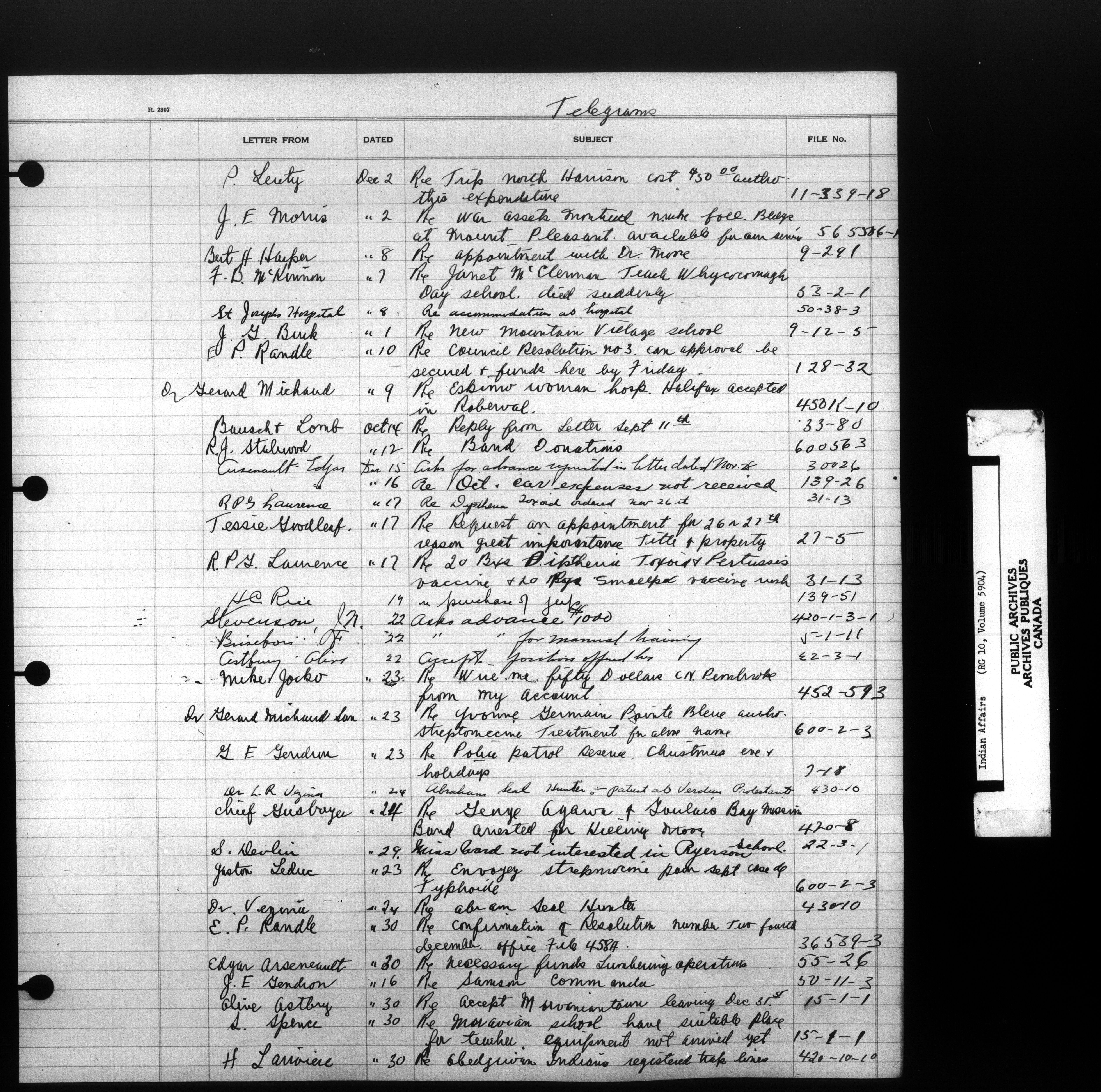 Department of Indian Affairs, Headquarters central registry system :registers, indices and indexed registers : C-10930
