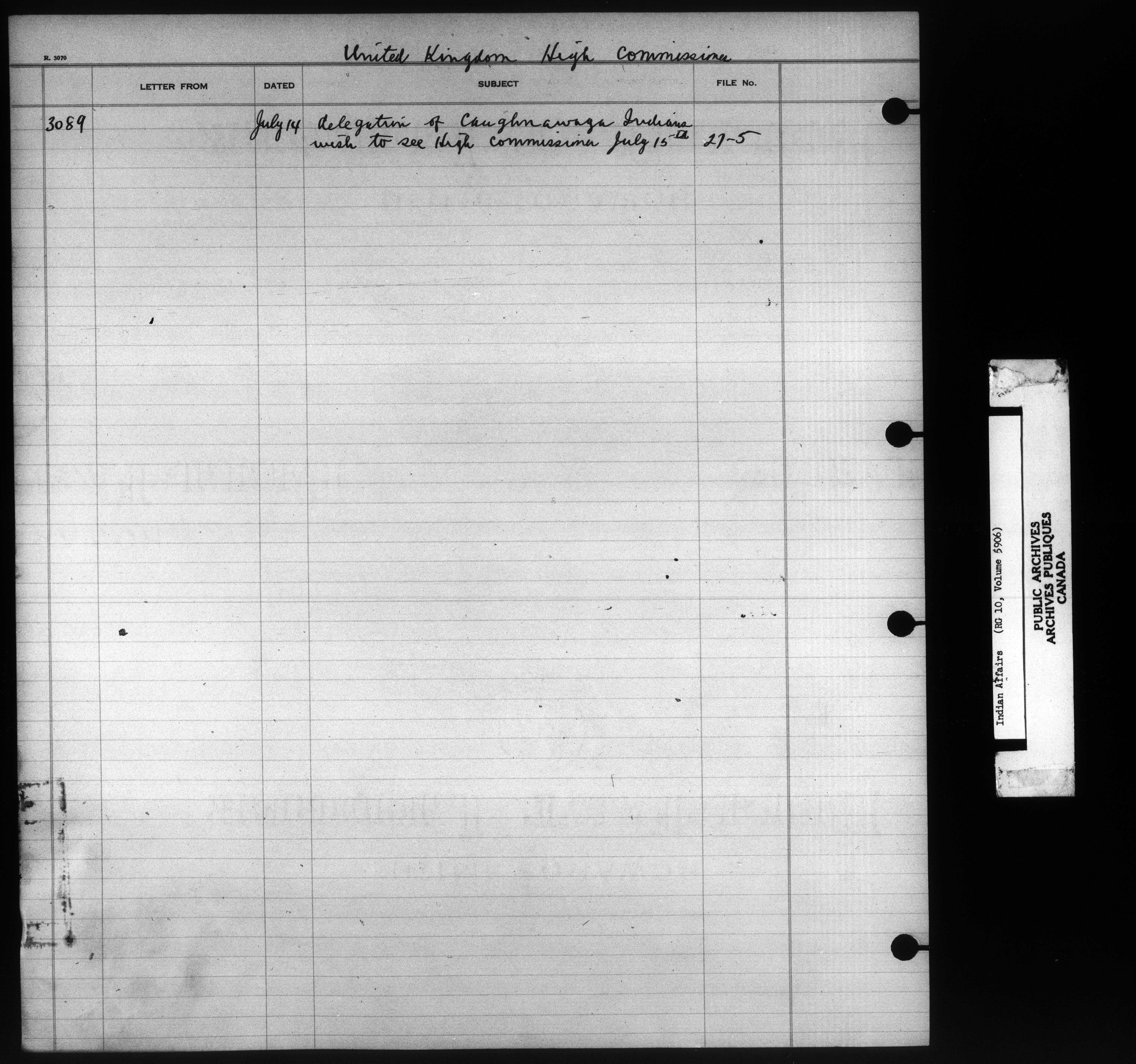 Department of Indian Affairs, Headquarters central registry system :registers, indices and indexed registers : C-10932