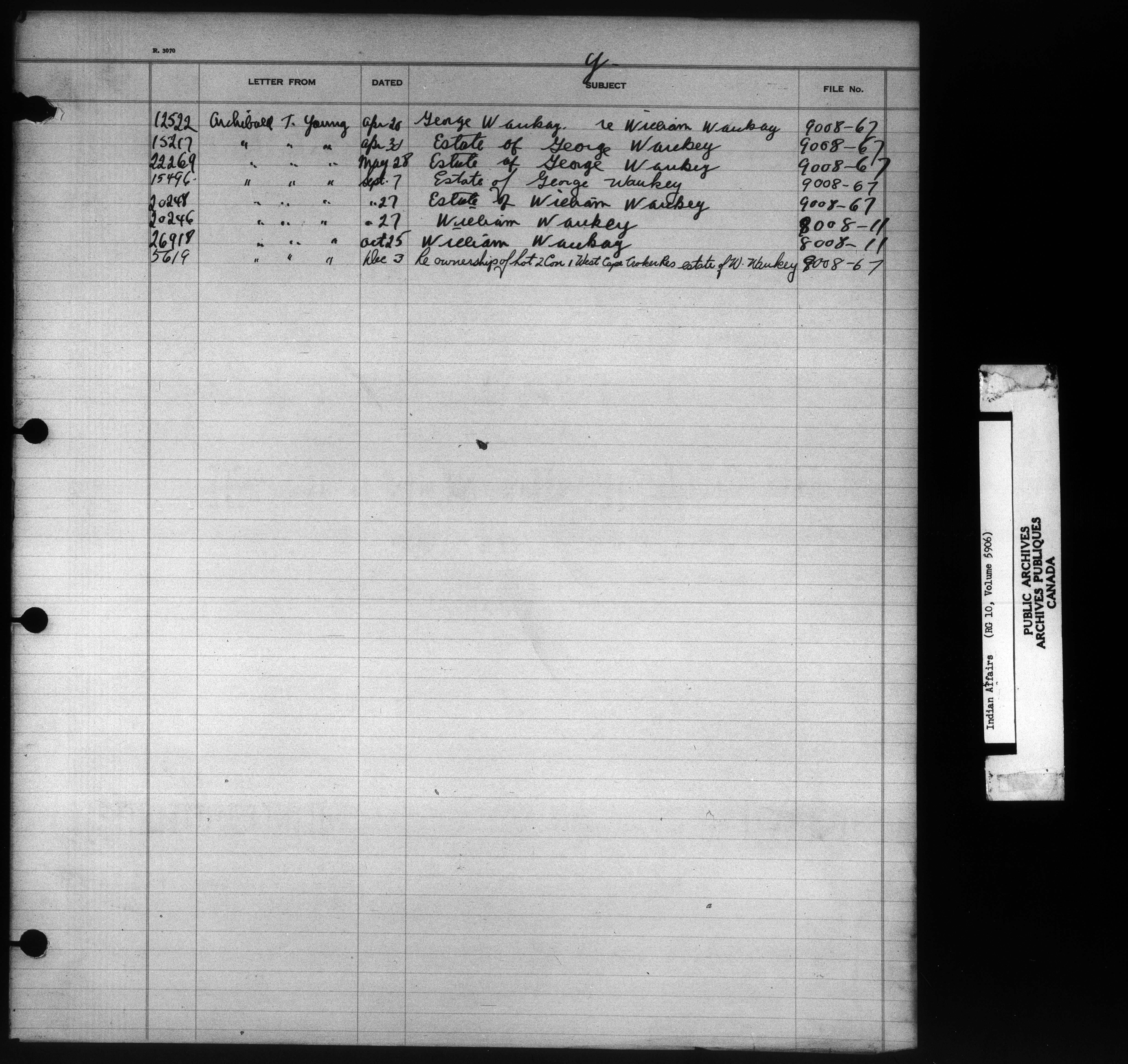 Department of Indian Affairs : Indexed Registers for Eastern Canada - 10932