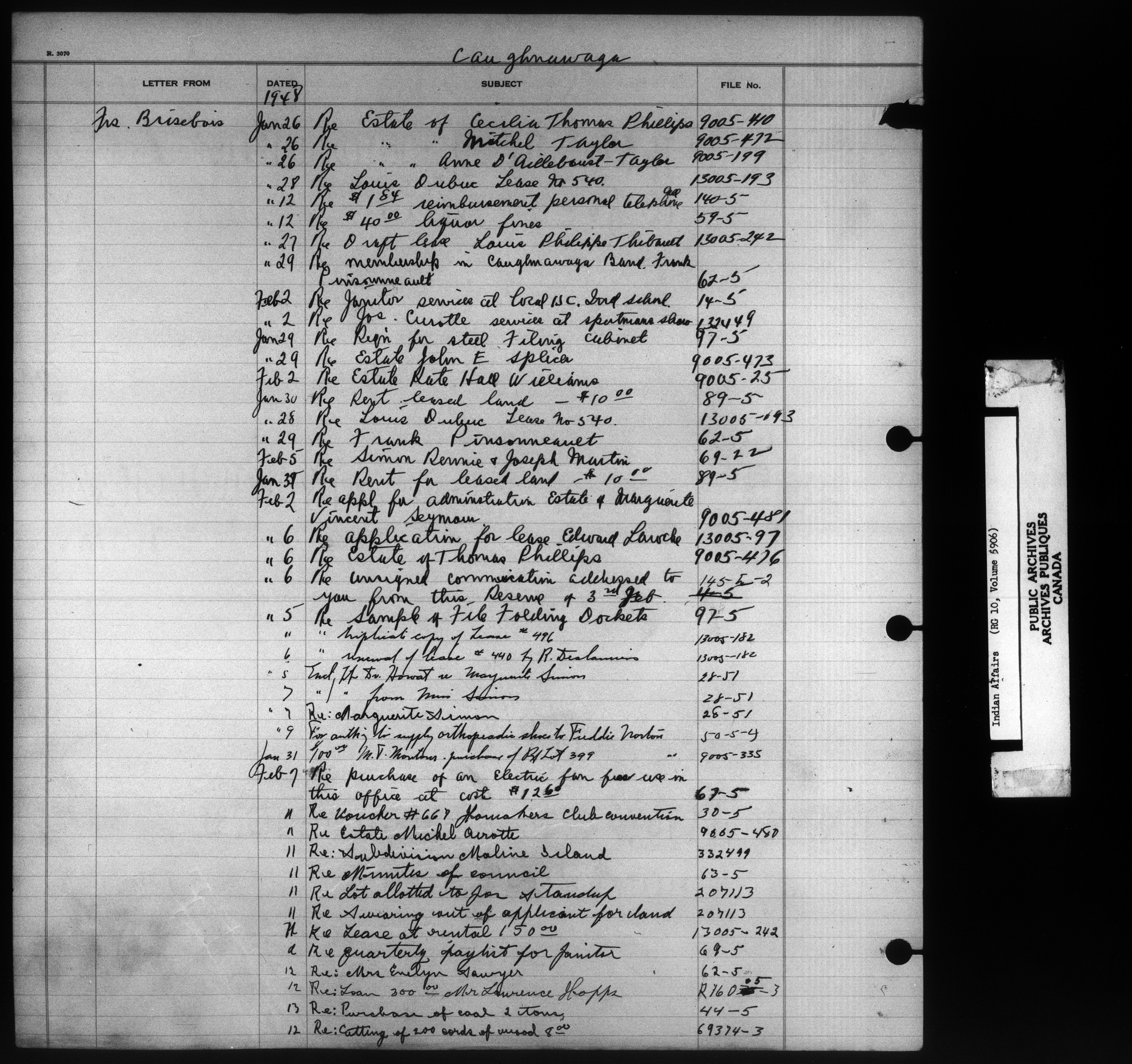 Department of Indian Affairs : Indexed Registers for Eastern Canada - 10932