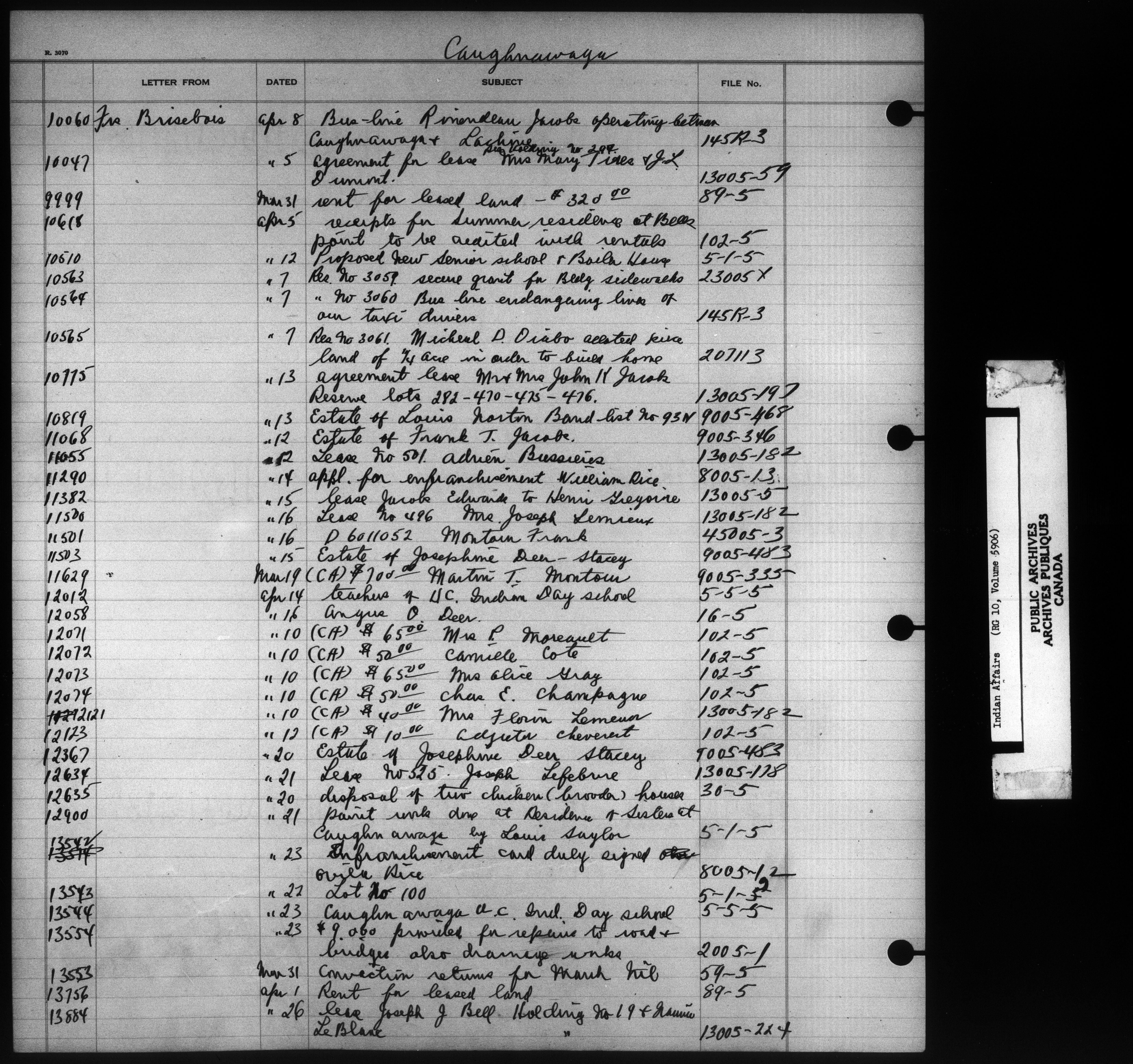 Department of Indian Affairs : Indexed Registers for Eastern Canada - 10932