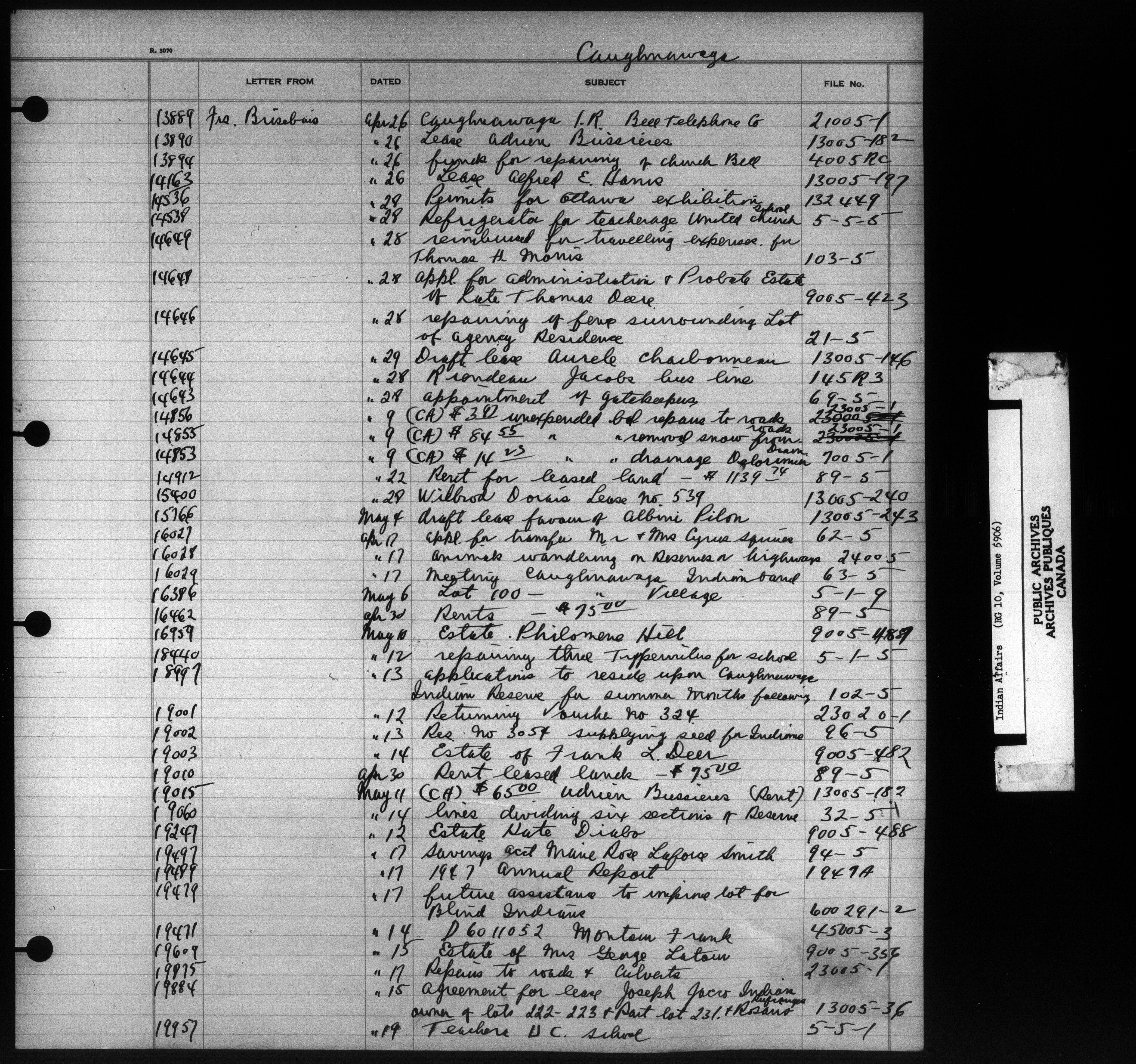 Department of Indian Affairs, Headquarters central registry system :registers, indices and indexed registers : C-10932
