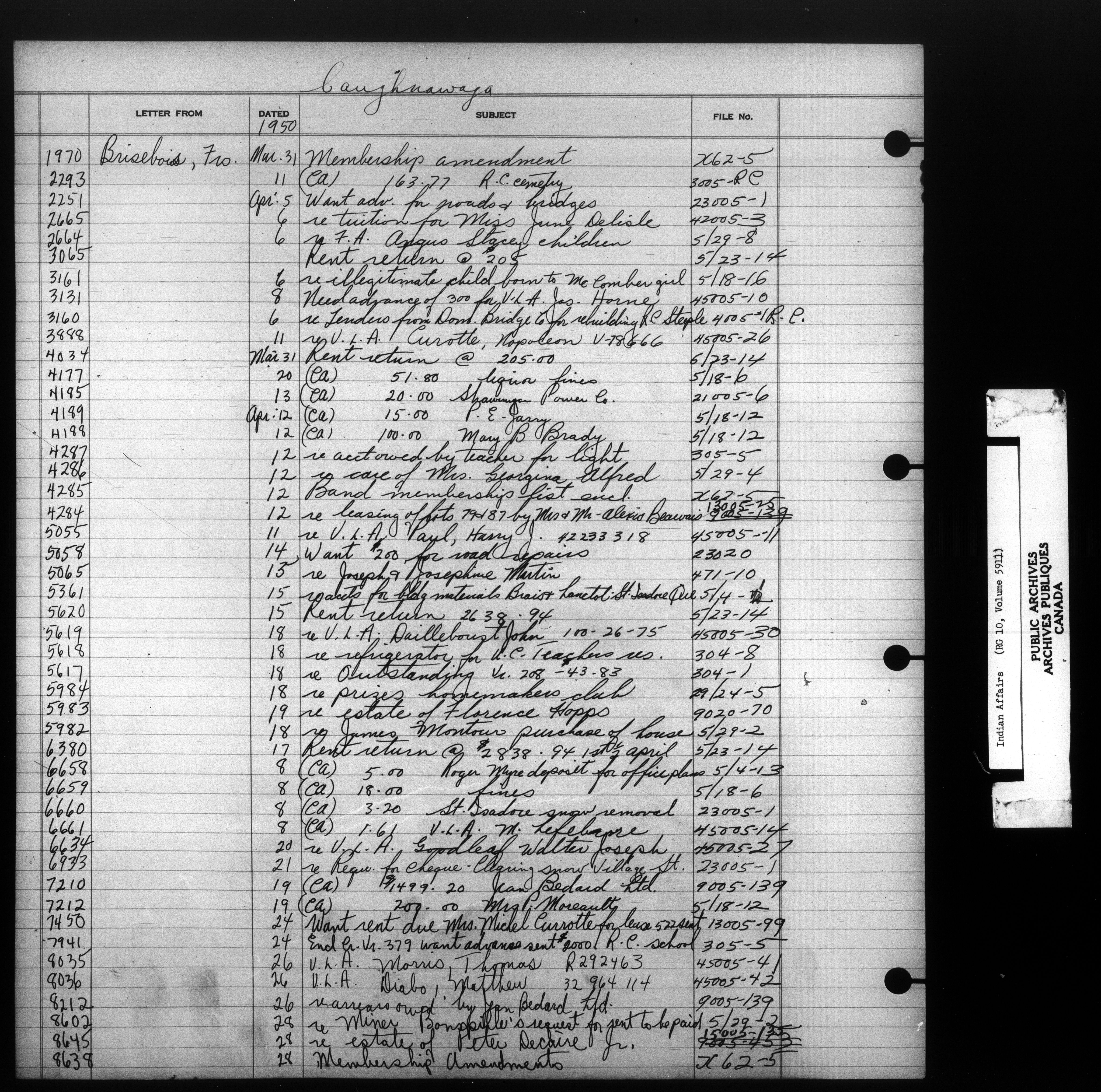 Department of Indian Affairs : Indexed Registers for Eastern Canada - 10934