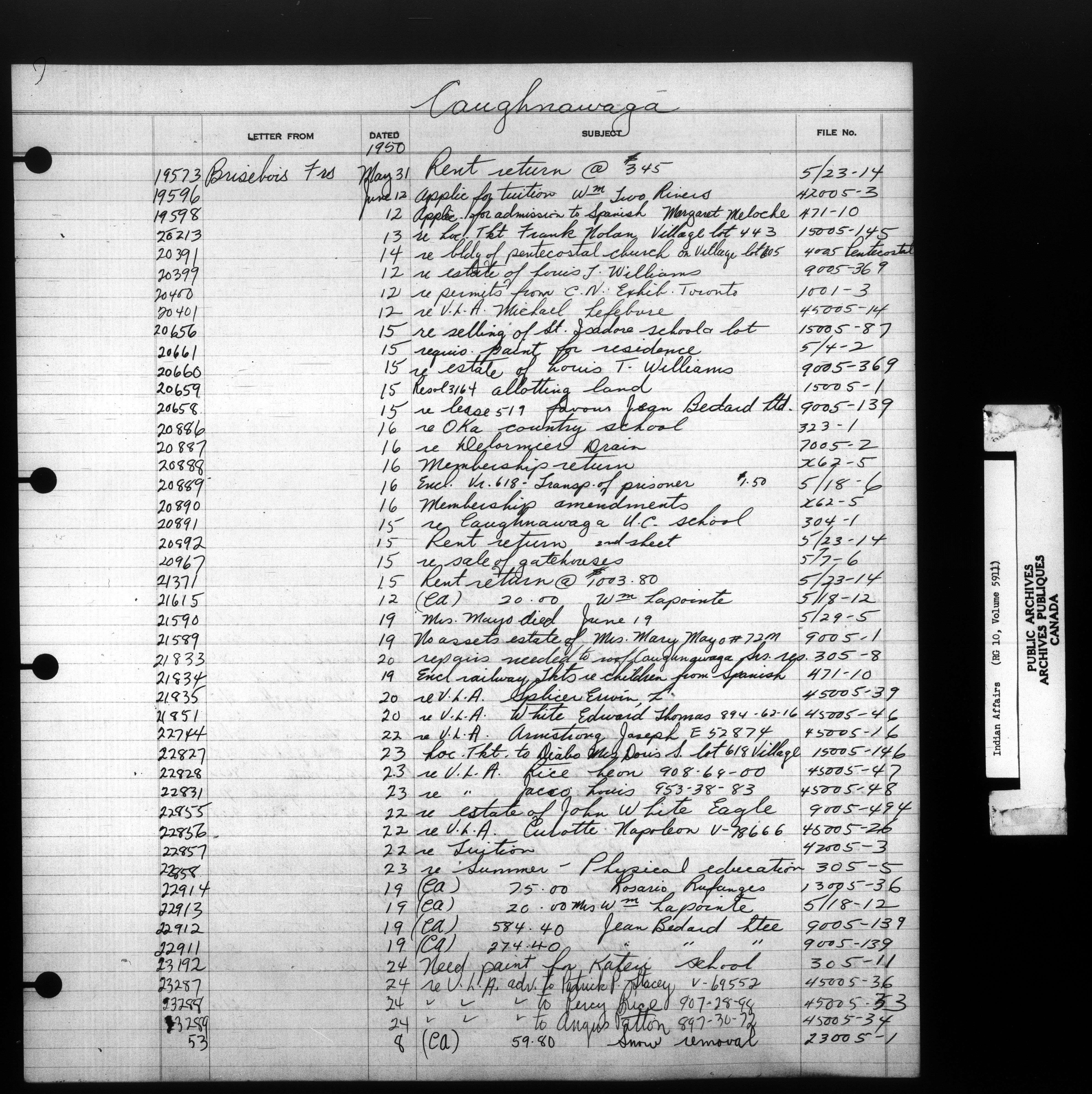 Department of Indian Affairs : Indexed Registers for Eastern Canada - 10934