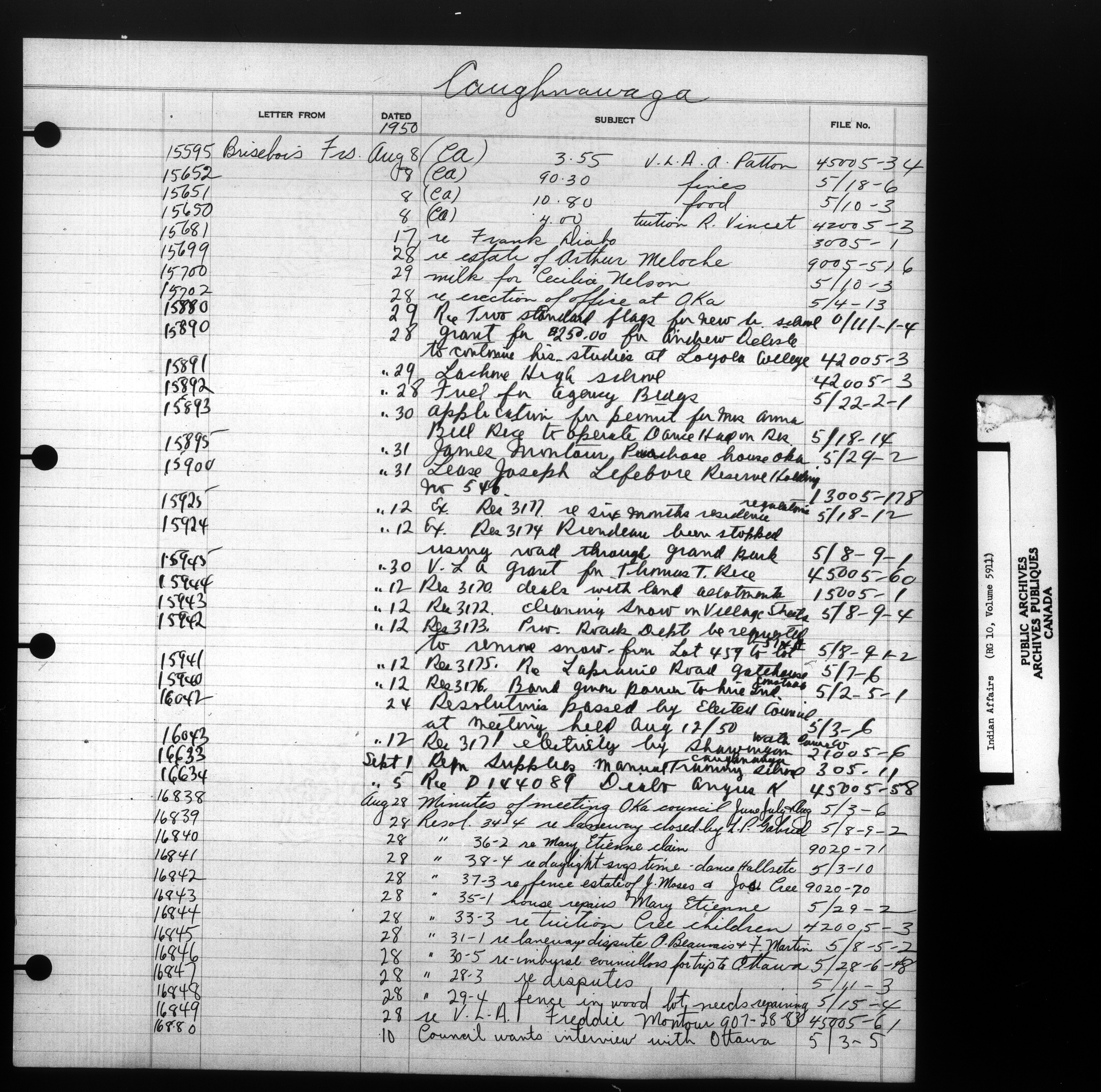 Department of Indian Affairs : Indexed Registers for Eastern Canada - 10934