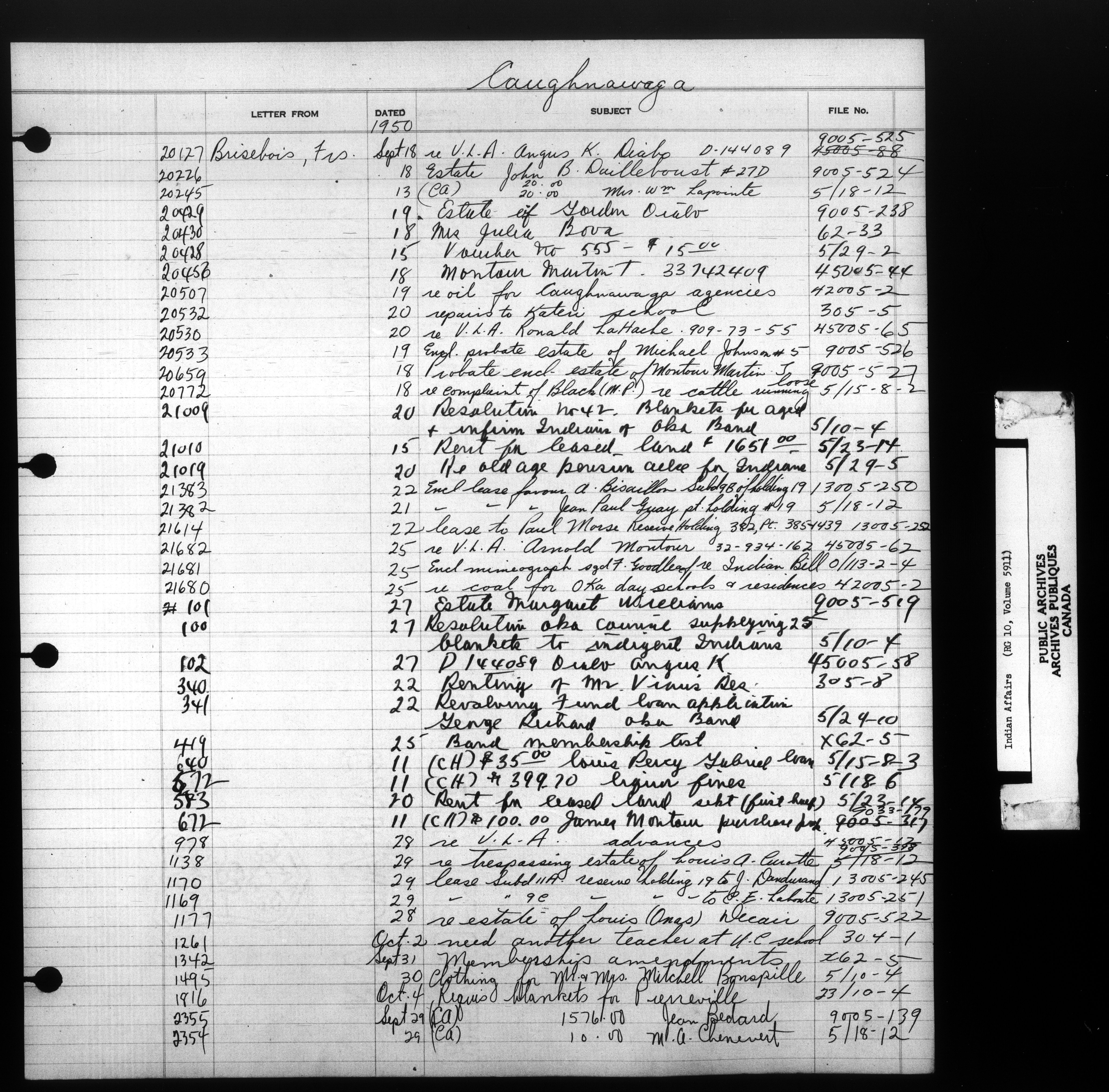 Department of Indian Affairs : Indexed Registers for Eastern Canada - 10934