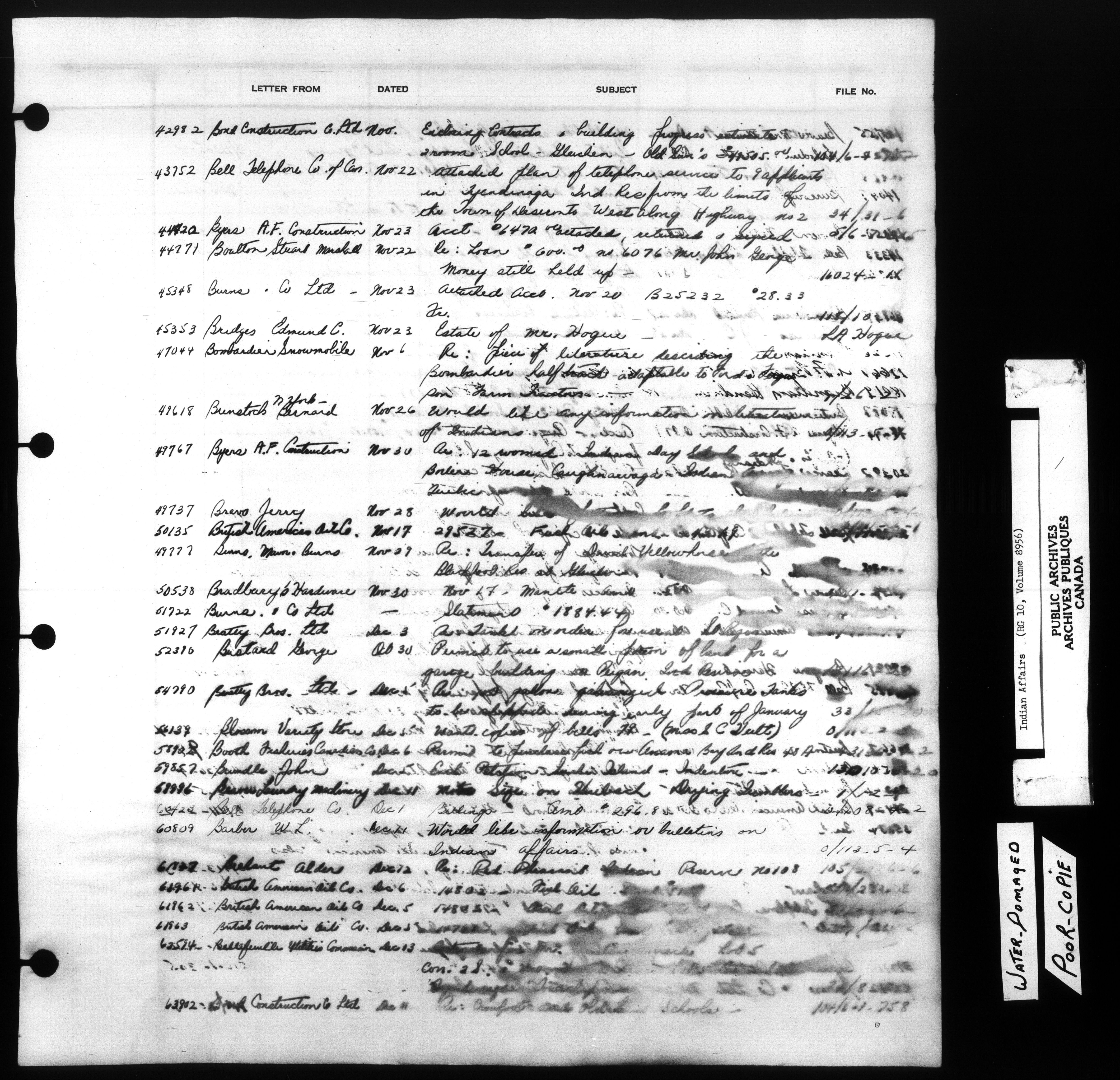Department of Indian Affairs : Indexed Registers for Eastern Canada - 10934