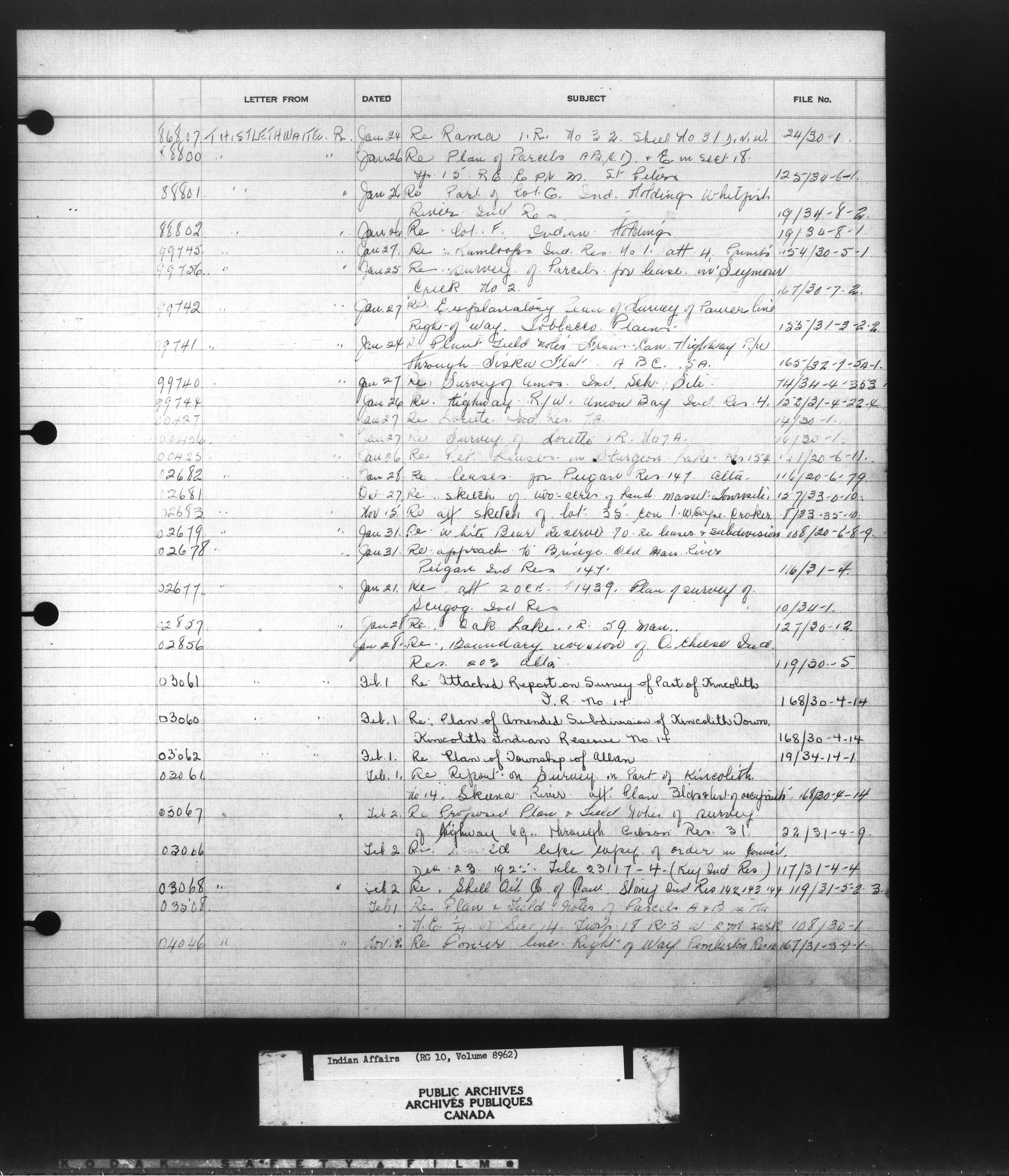 Department of Indian Affairs, Headquarters central registry system :registers, indices and indexed registers : C-10936