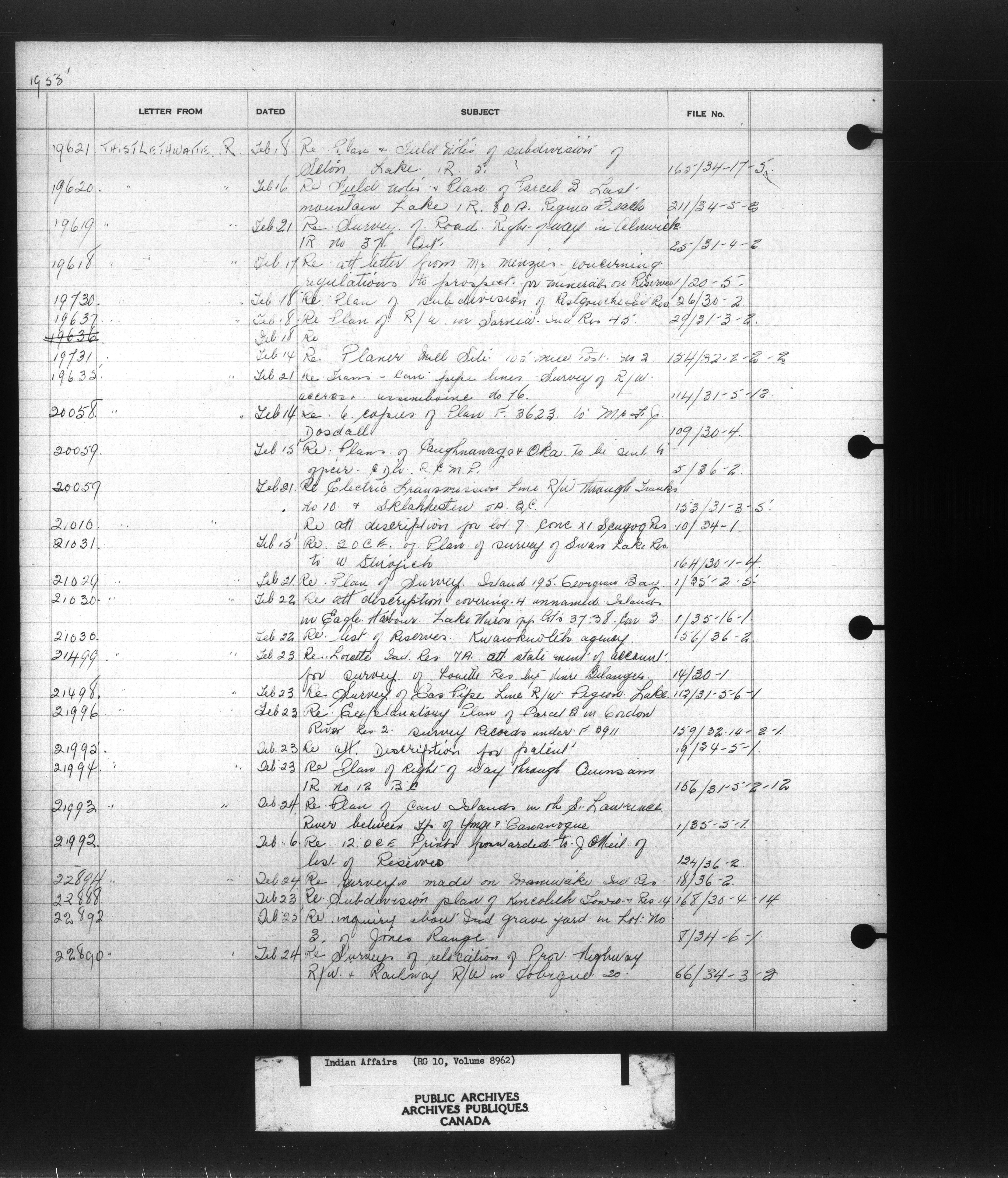 Department of Indian Affairs, Headquarters central registry system :registers, indices and indexed registers : C-10936