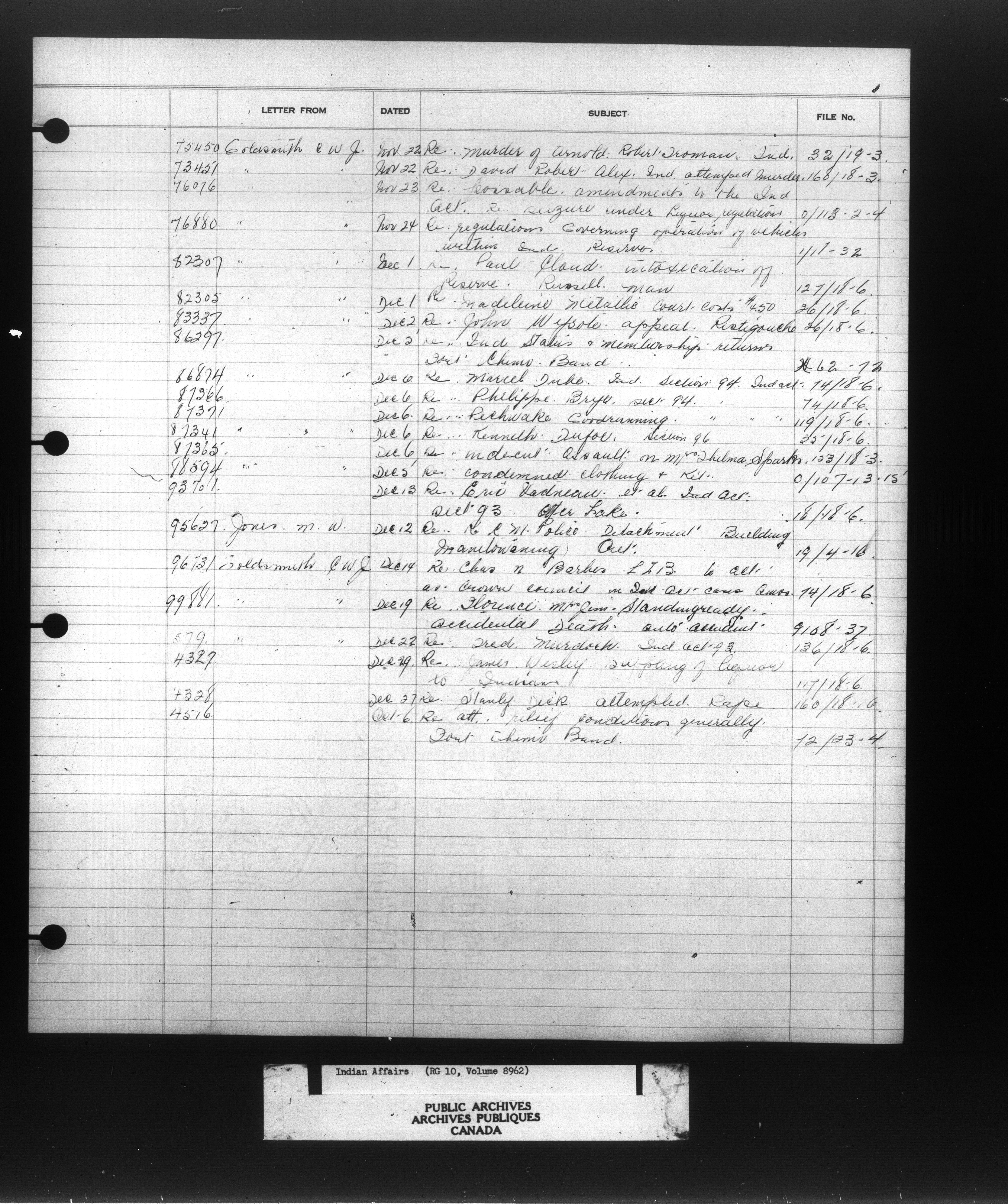 Department of Indian Affairs : Indexed Registers for Eastern Canada - 10937