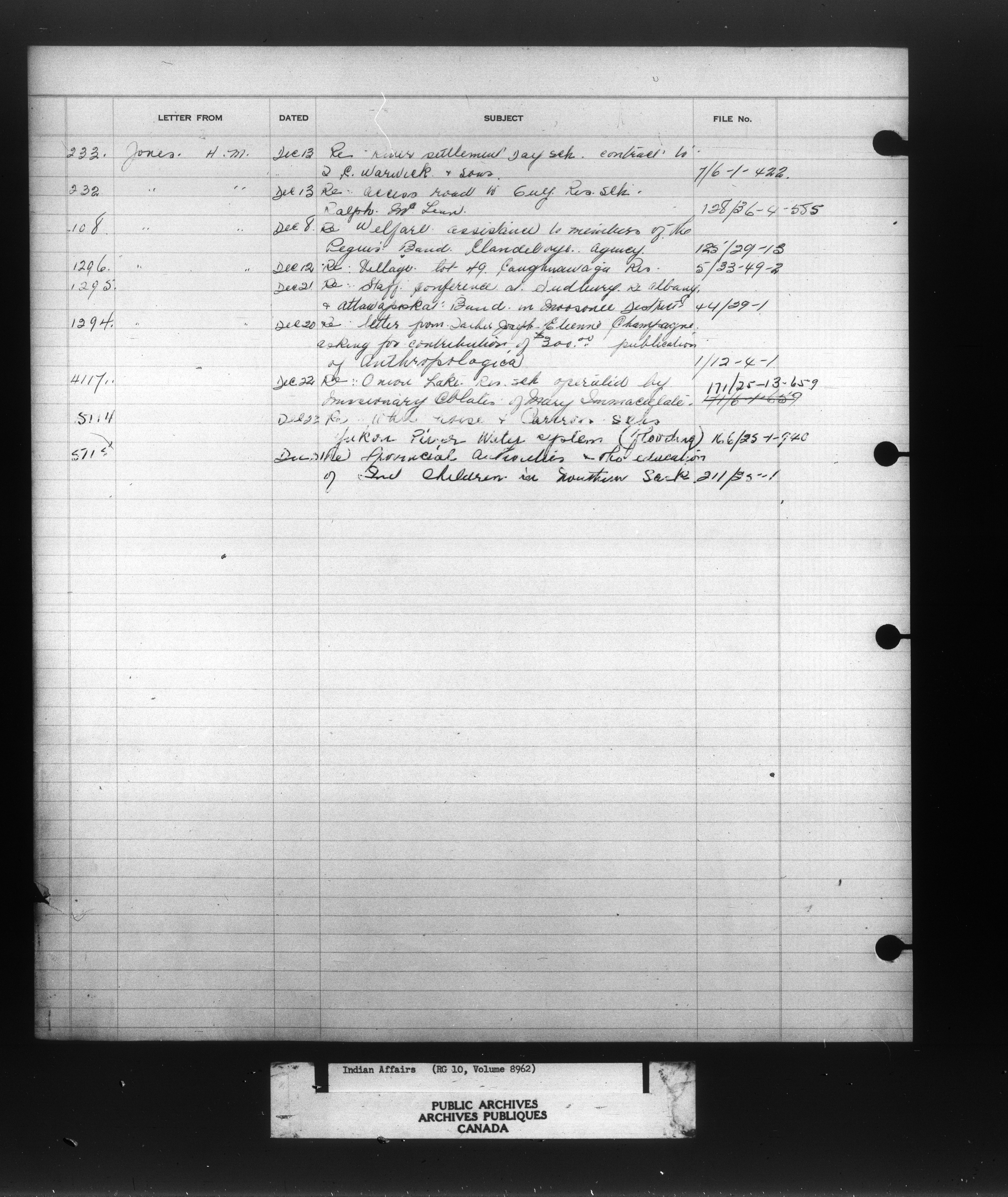 Department of Indian Affairs : Indexed Registers for Eastern Canada - 10937