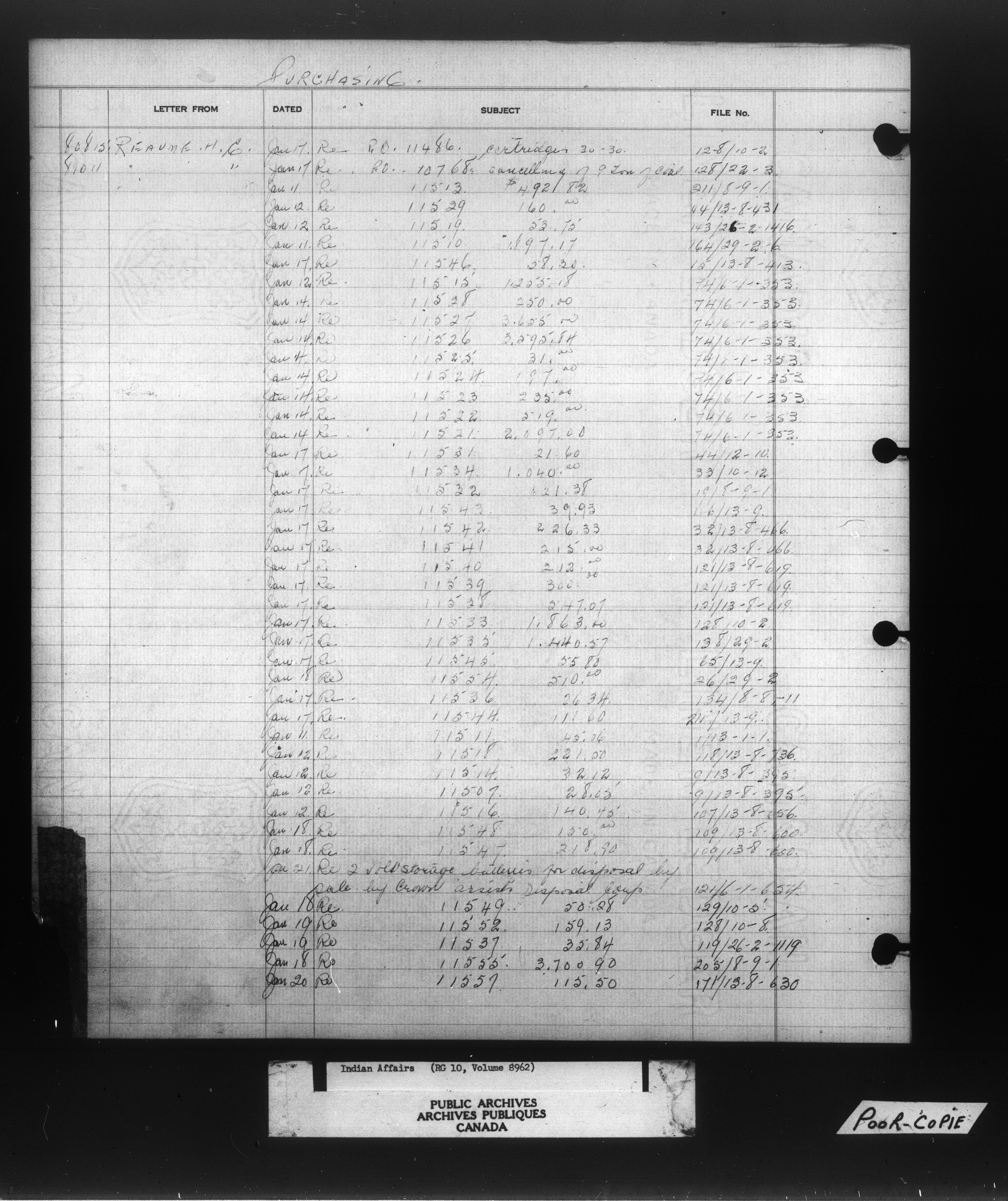 Department of Indian Affairs : Indexed Registers for Eastern Canada - 10937