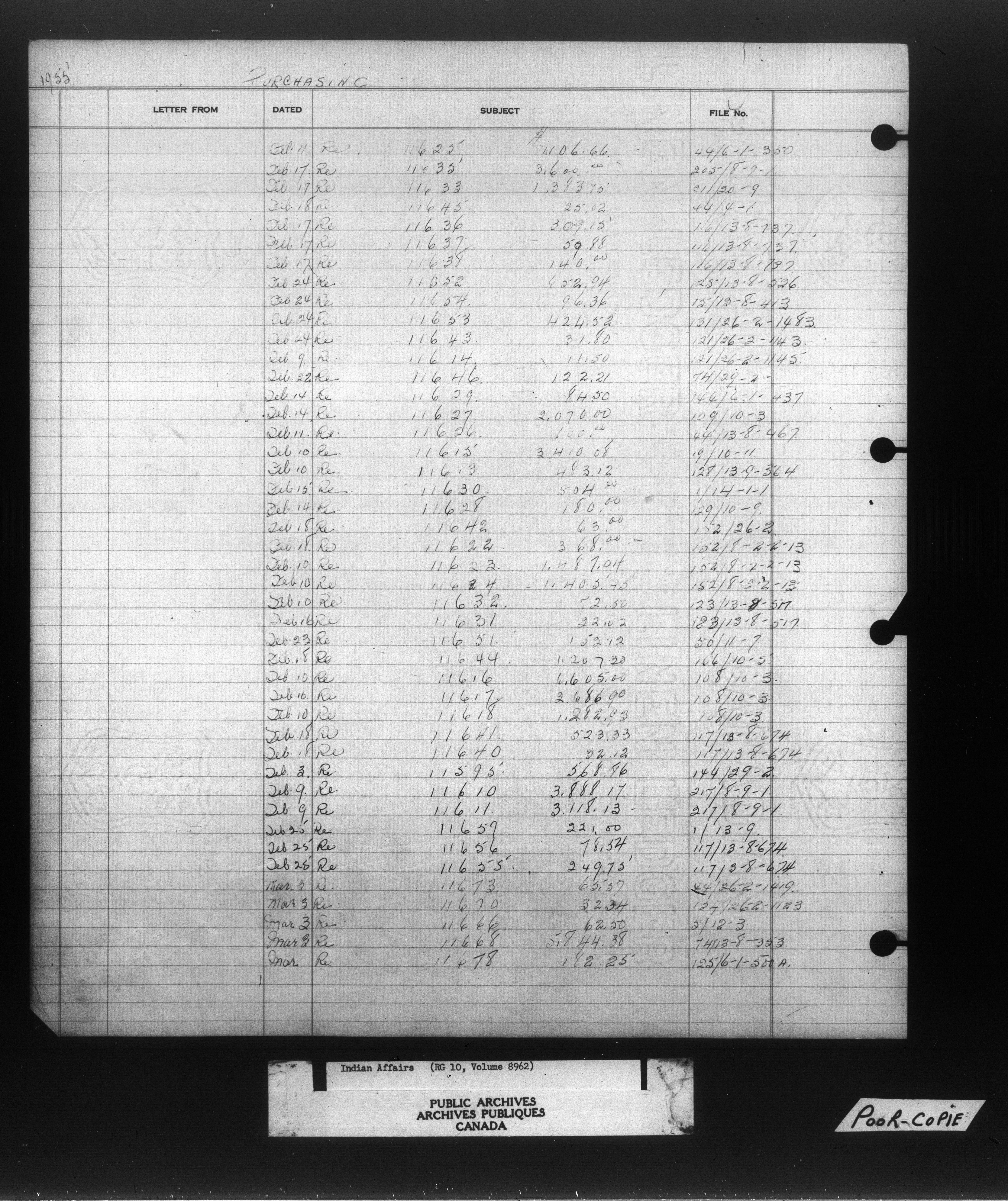 Department of Indian Affairs : Indexed Registers for Eastern Canada - 10937