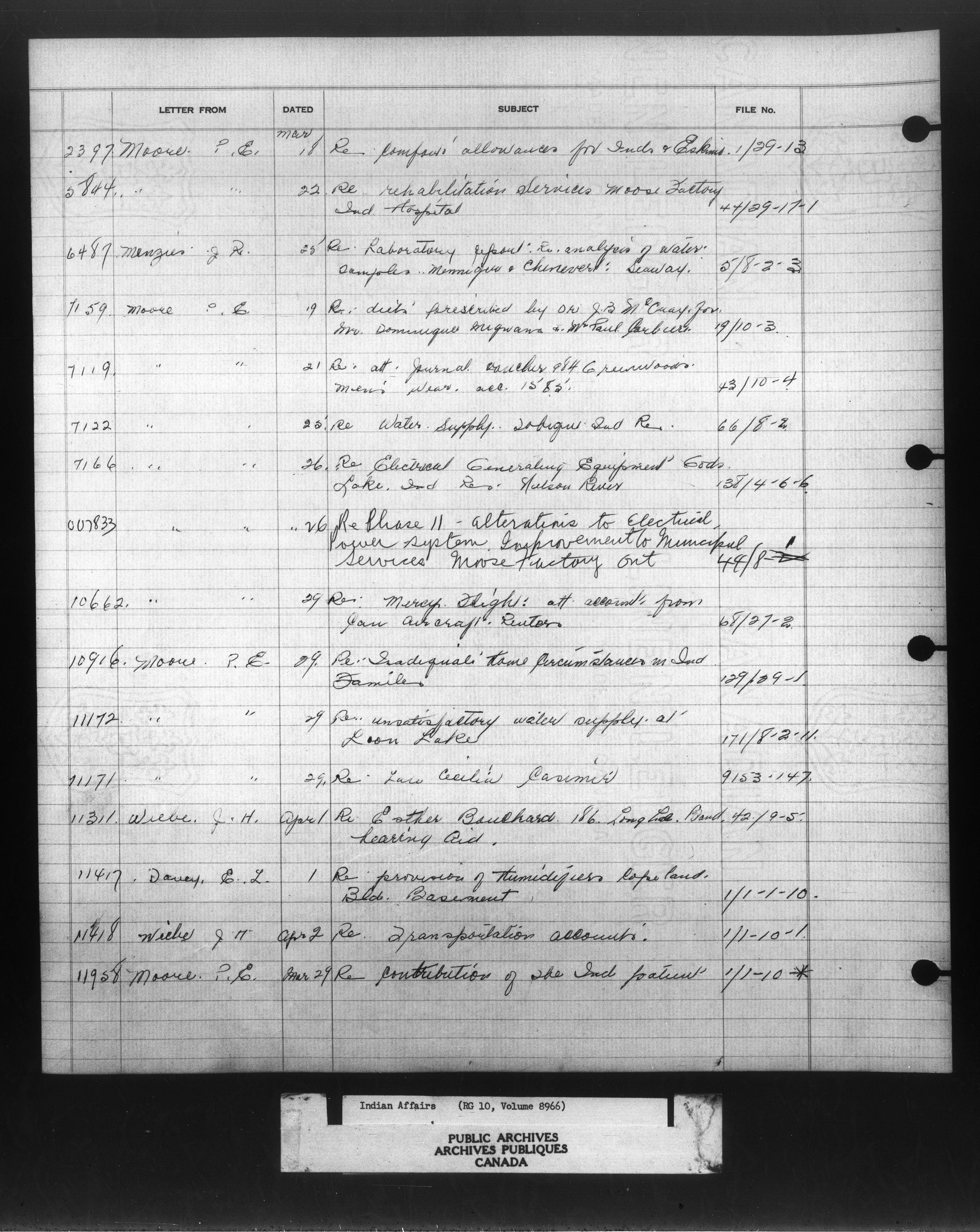 Department of Indian Affairs : Indexed Registers for Eastern Canada - 10938