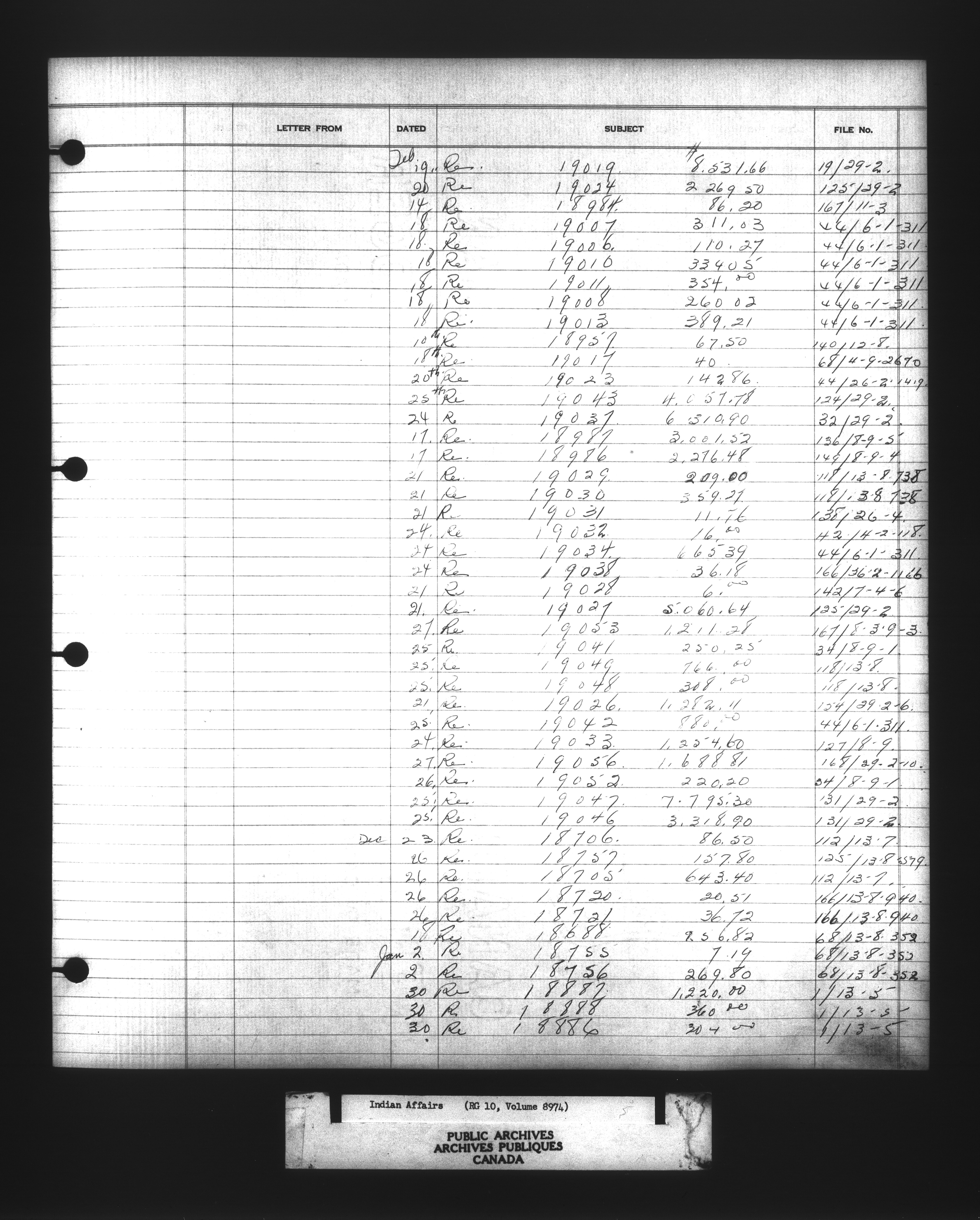 Department of Indian Affairs : Indexed Registers for Eastern Canada - 10939