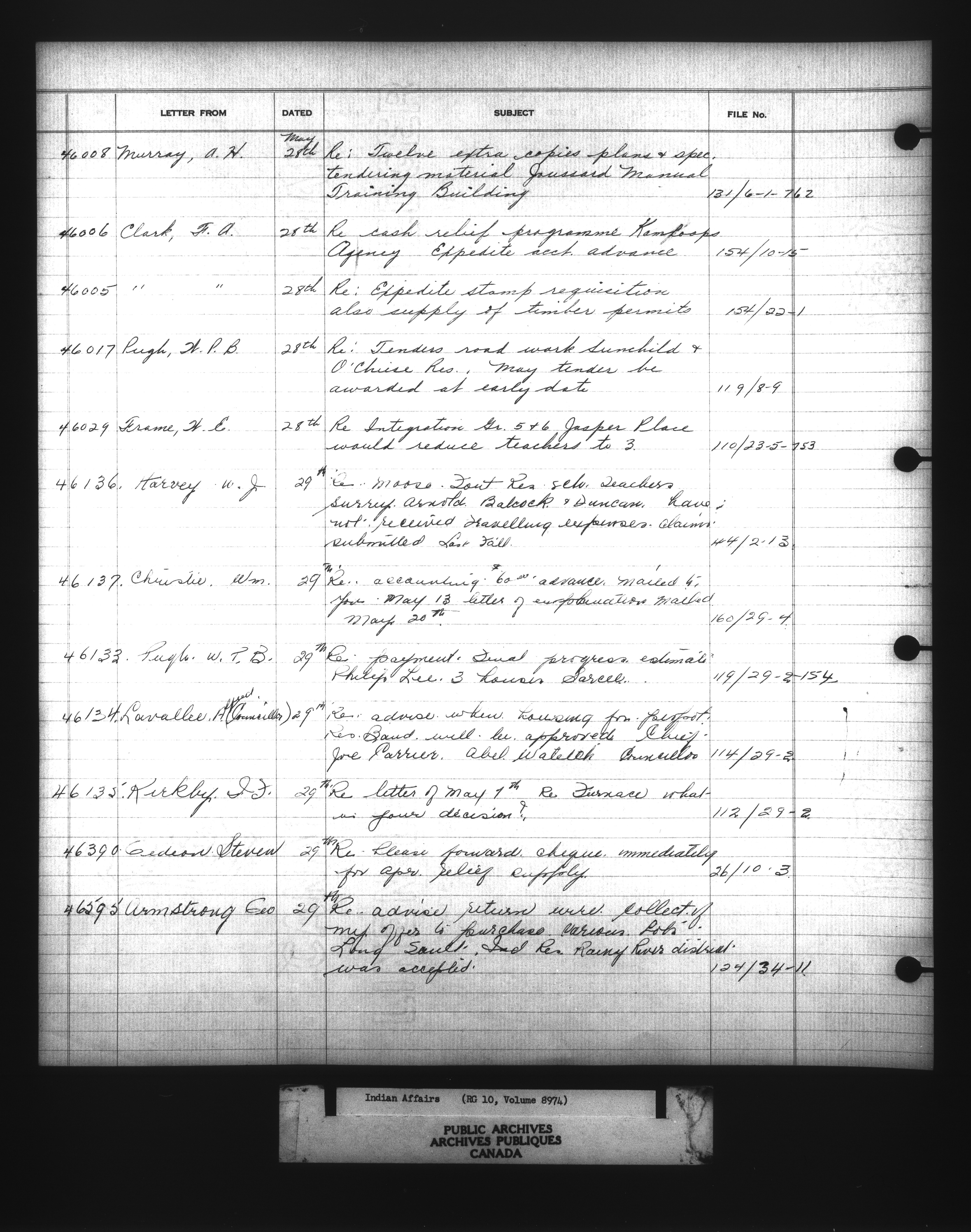 Department of Indian Affairs, Headquarters central registry system :registers, indices and indexed registers : C-10940