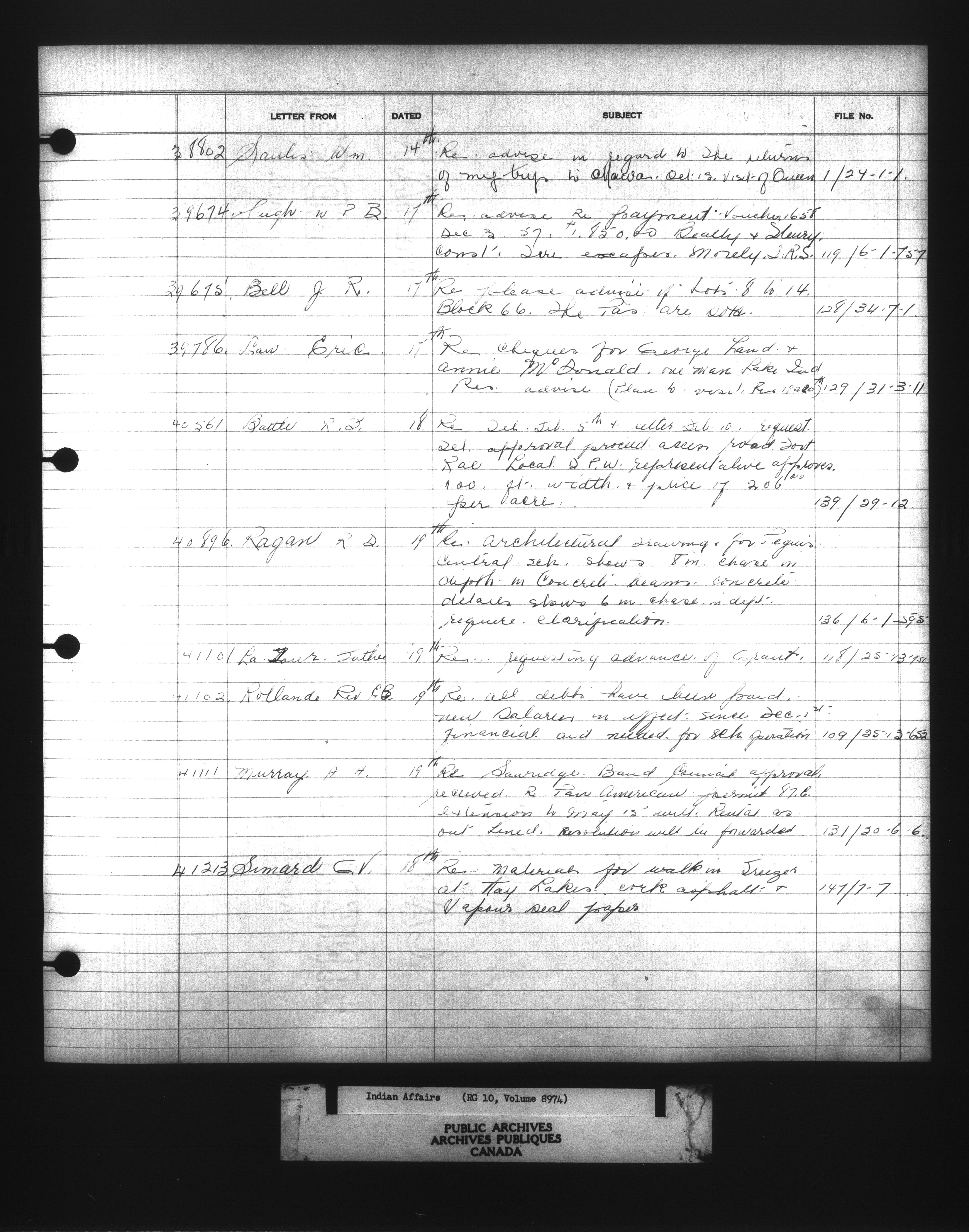 Department of Indian Affairs : Indexed Registers for Eastern Canada - 10940