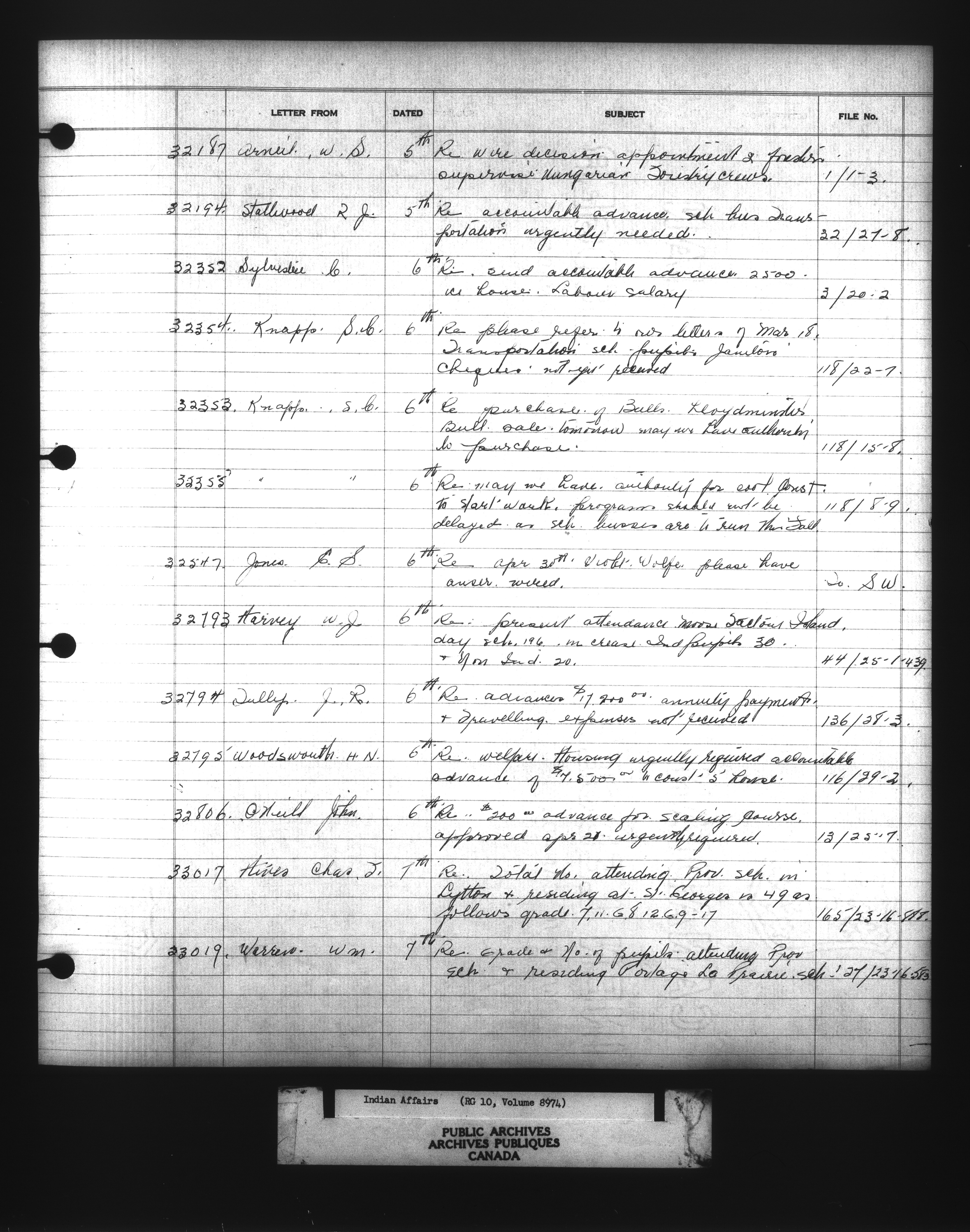 Department of Indian Affairs : Indexed Registers for Eastern Canada - 10940