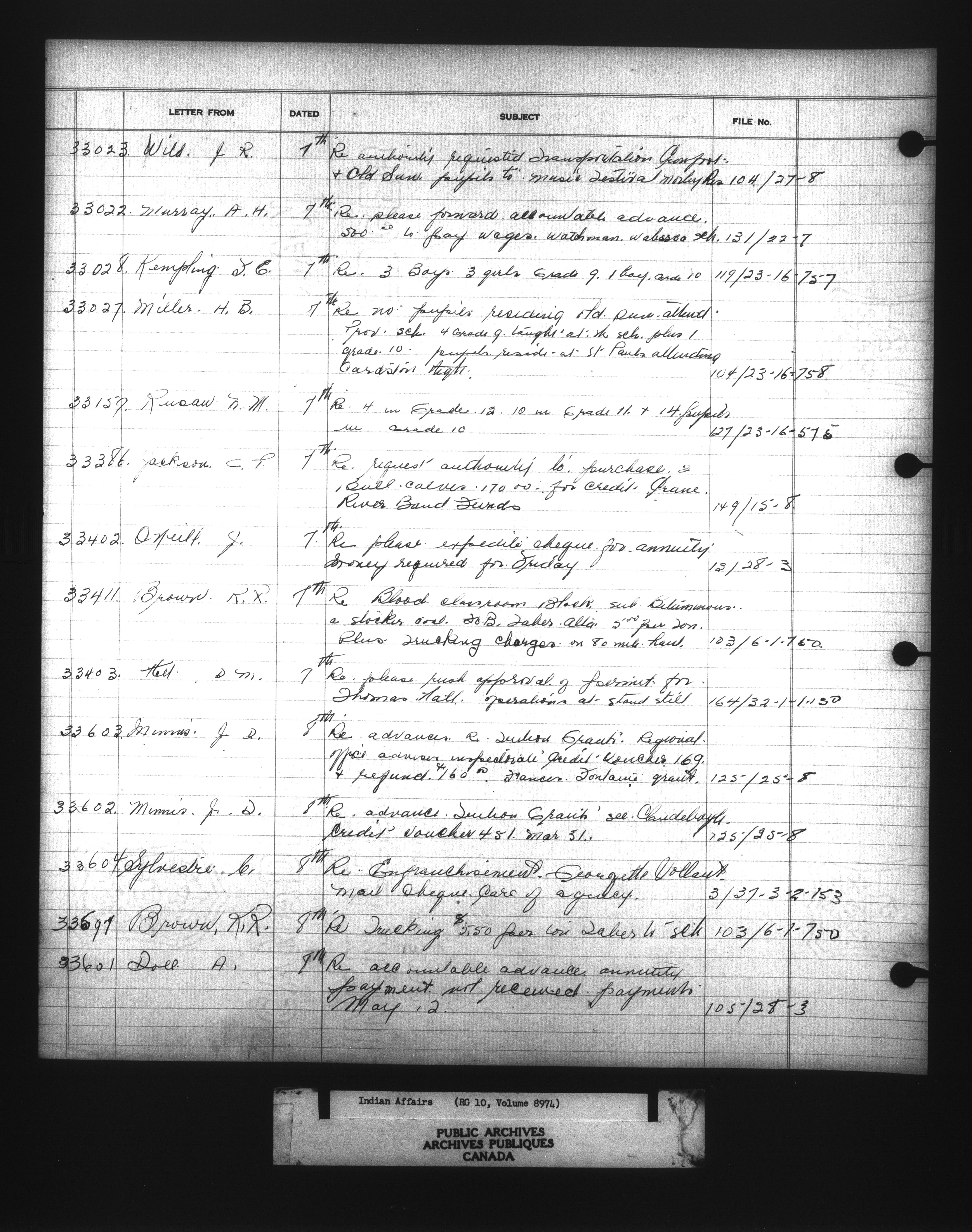 Department of Indian Affairs : Indexed Registers for Eastern Canada - 10940