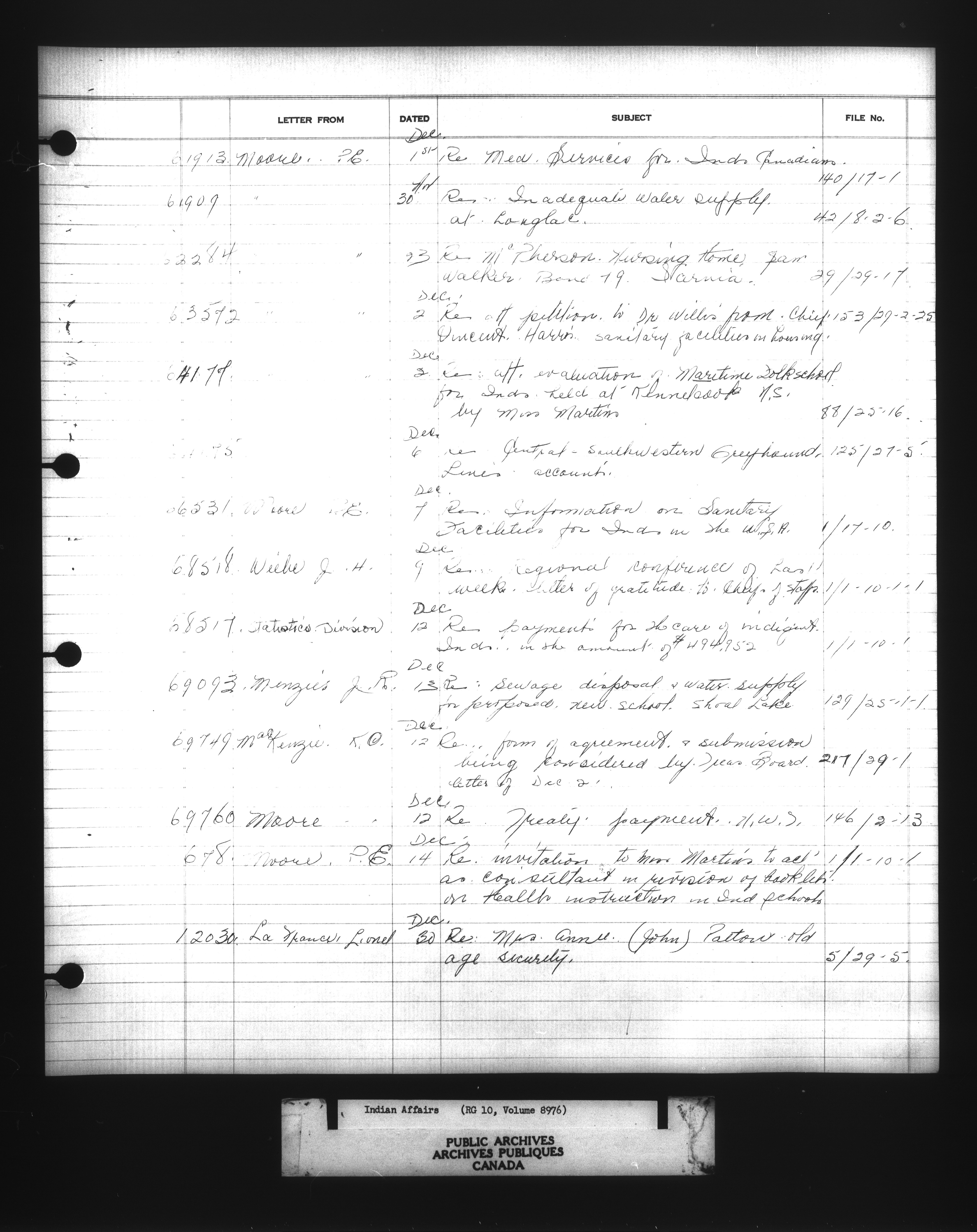 Department of Indian Affairs : Indexed Registers for Eastern Canada - 10940