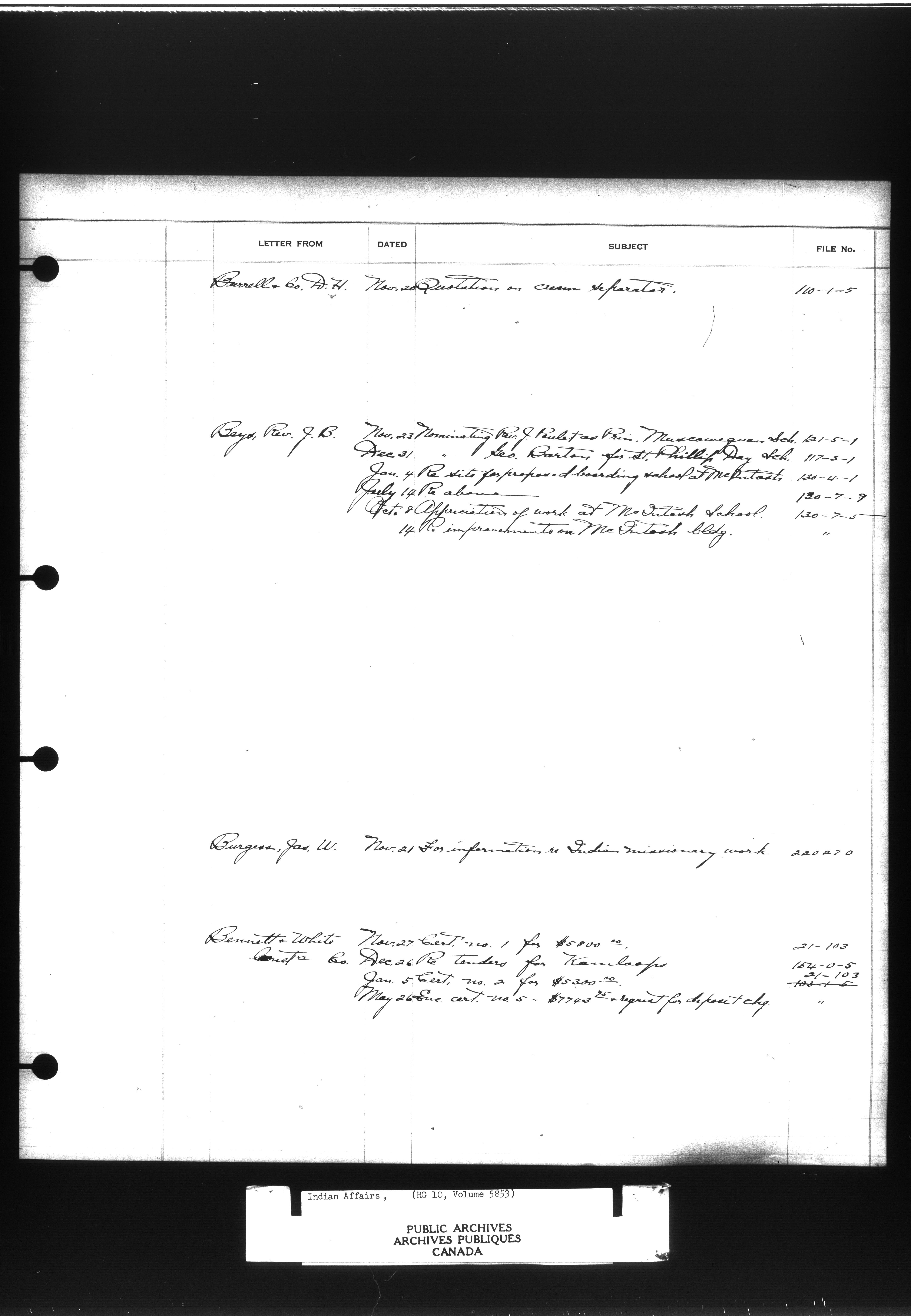 Department of Indian Affairs : Indexed Registers for Western Canada - 10942