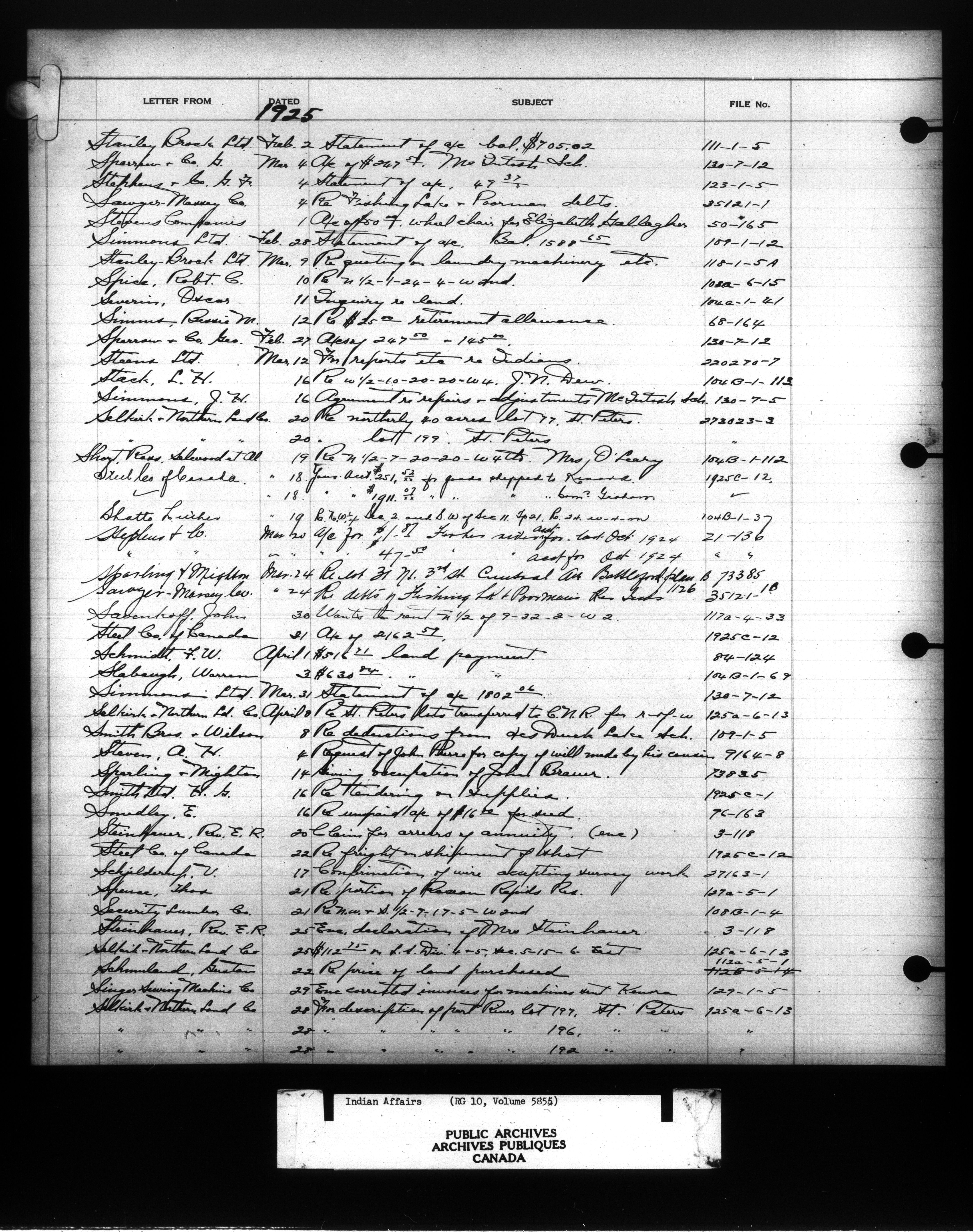 Department of Indian Affairs : Indexed Registers for Western Canada - 10943