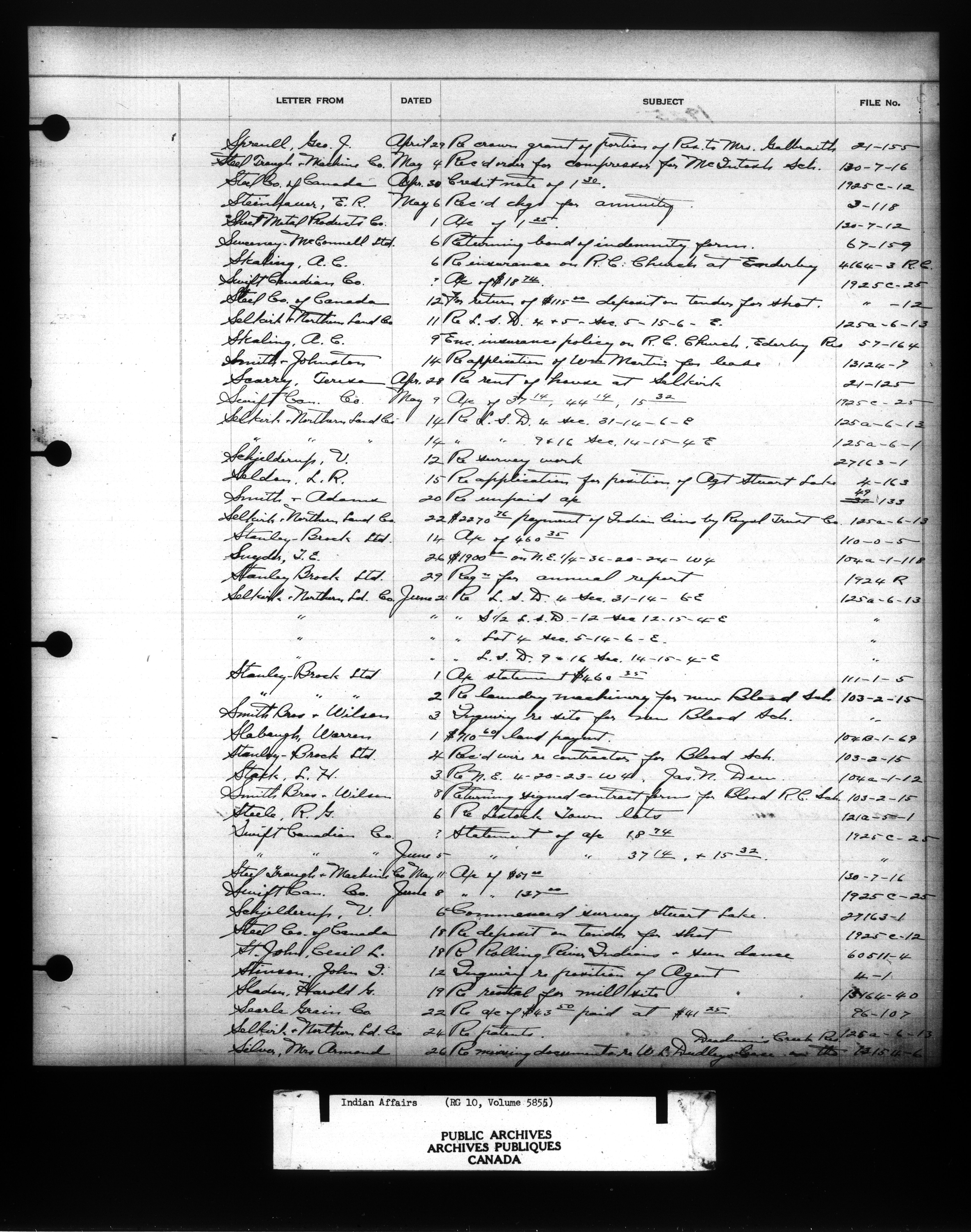 Department of Indian Affairs : Indexed Registers for Western Canada - 10943
